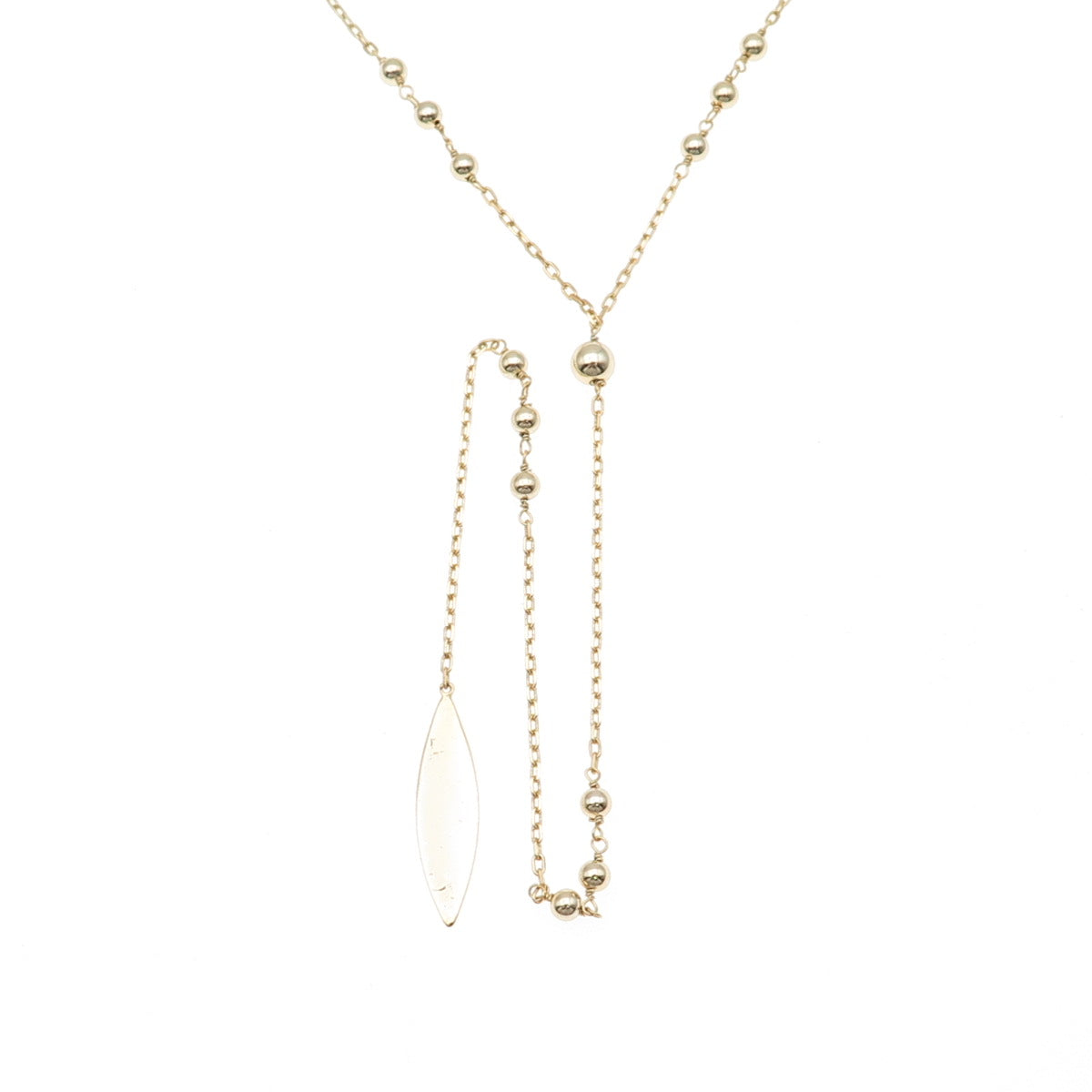 925 Sterling Silver Gold Plated Ball Beaded Cable Chain Lariat Necklace 20-22"