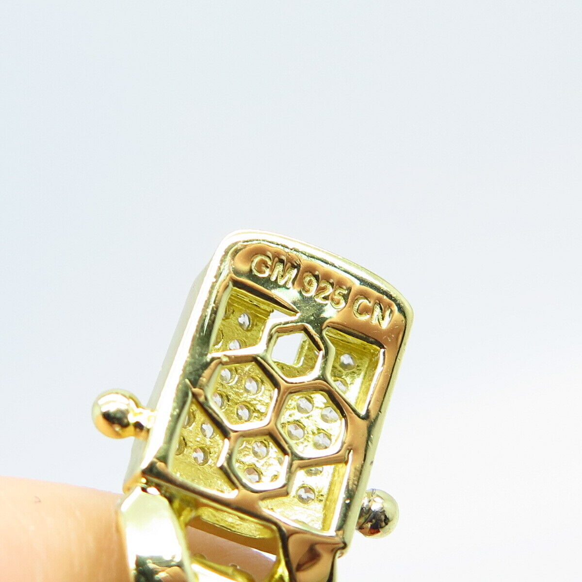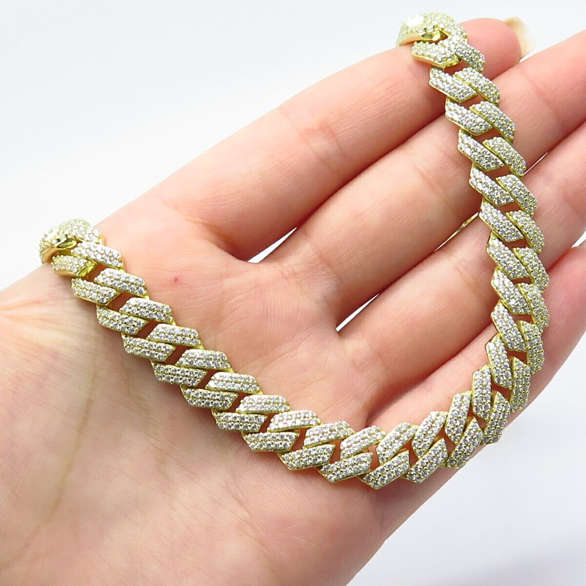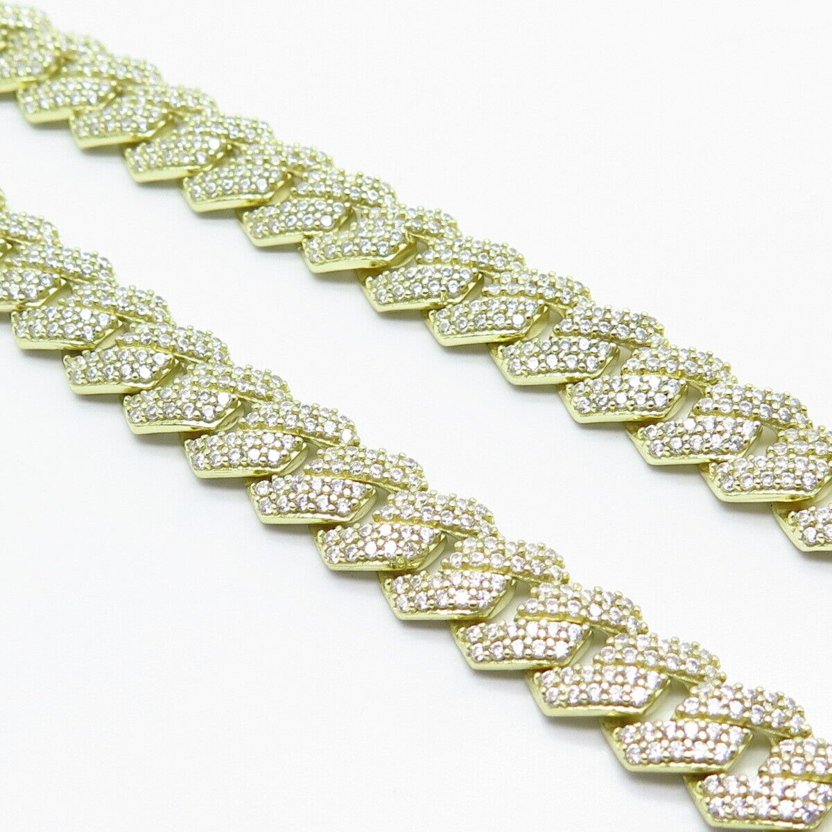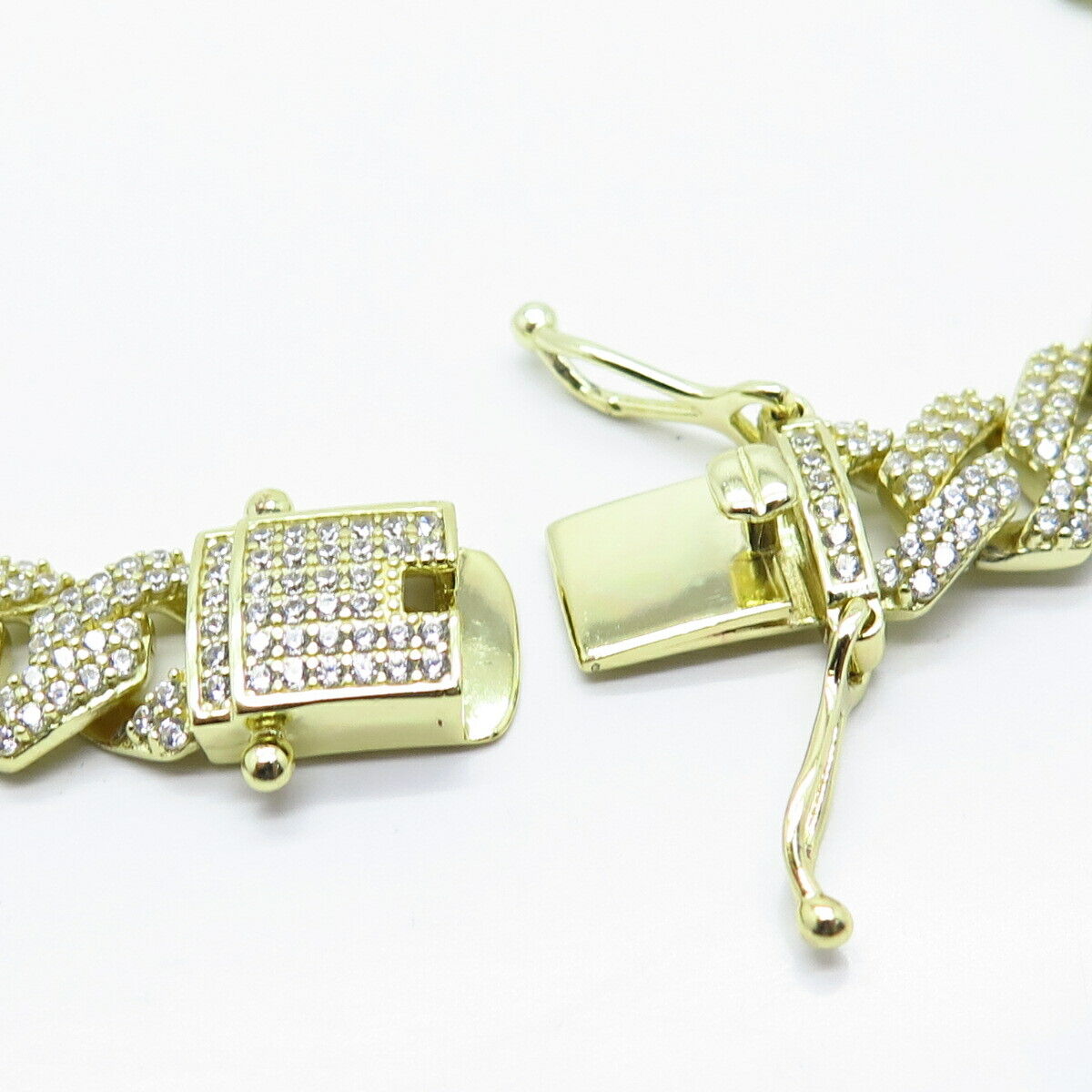 925 Sterling Silver Gold Plated C Z Cuban Chain Necklace 20"