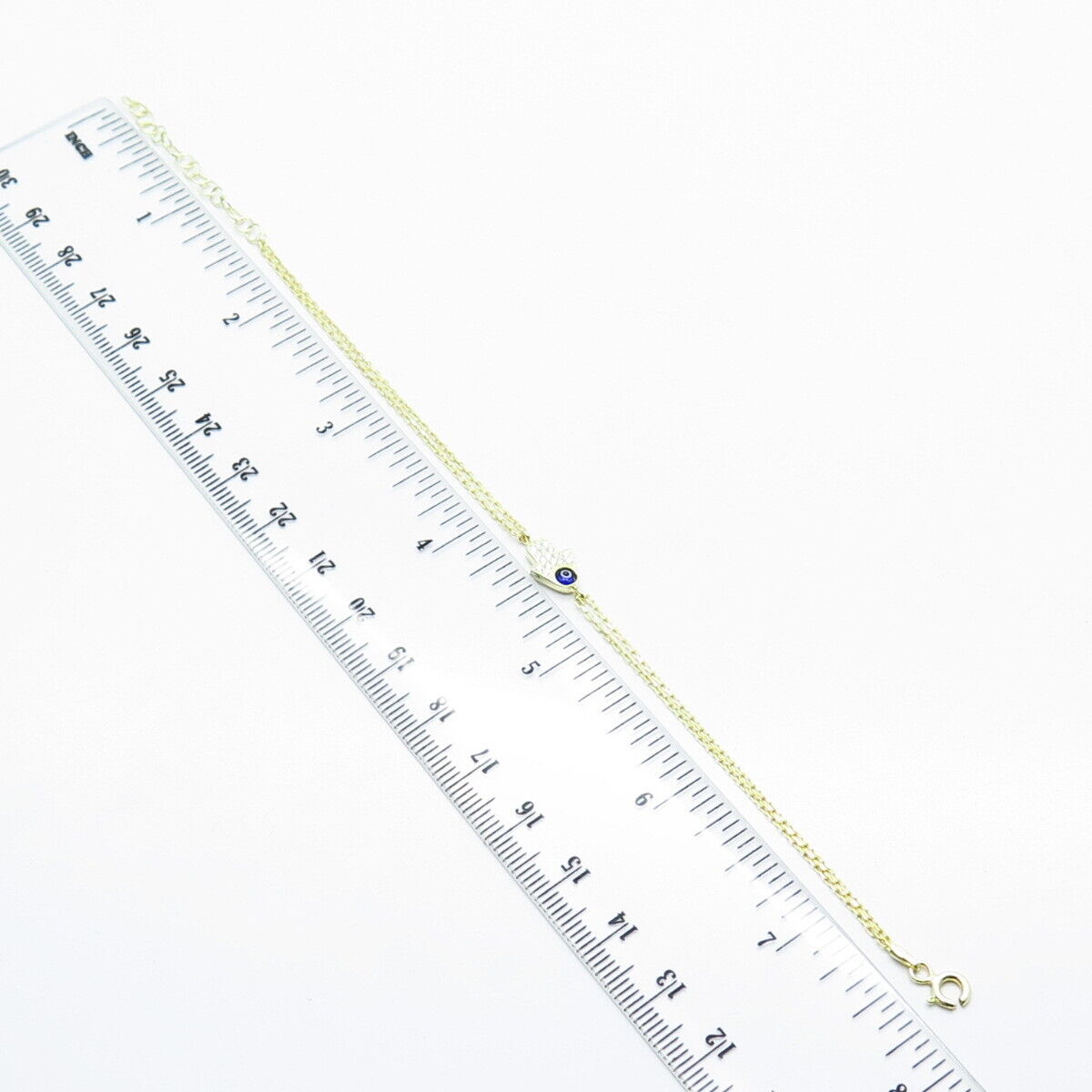 925 Sterling Silver Gold Plated C Z & Enamel Hamsa Rolo Link Bracelet 7.75"