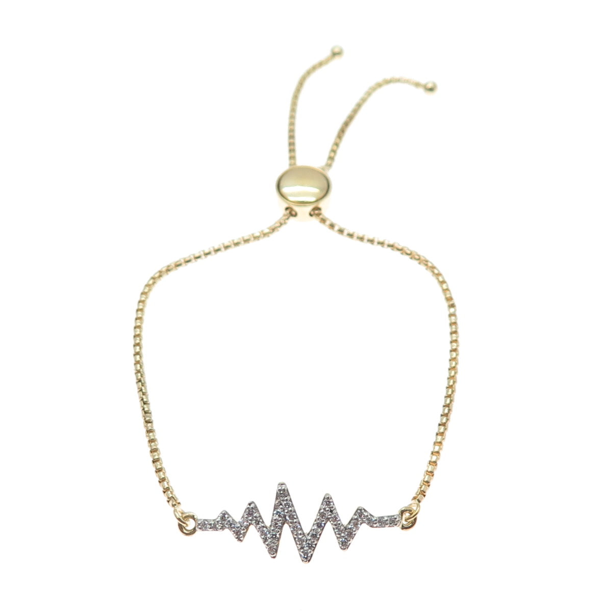 925 Sterling Silver Gold Plated C Z Heartbeat Adjustable Box Bracelet 6-9.25"