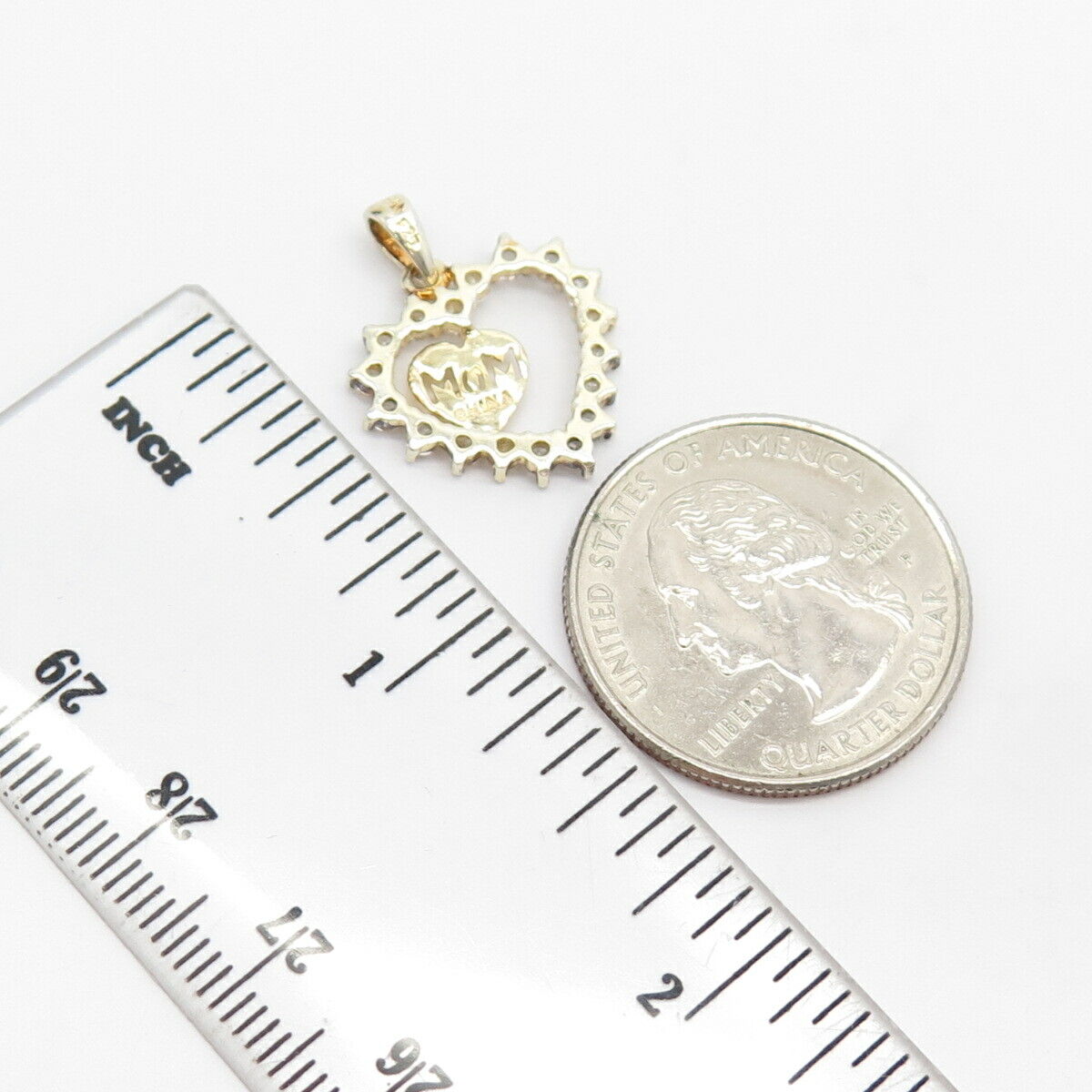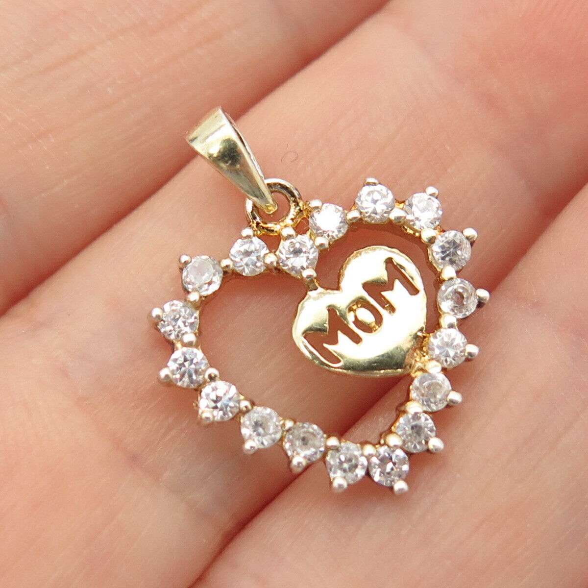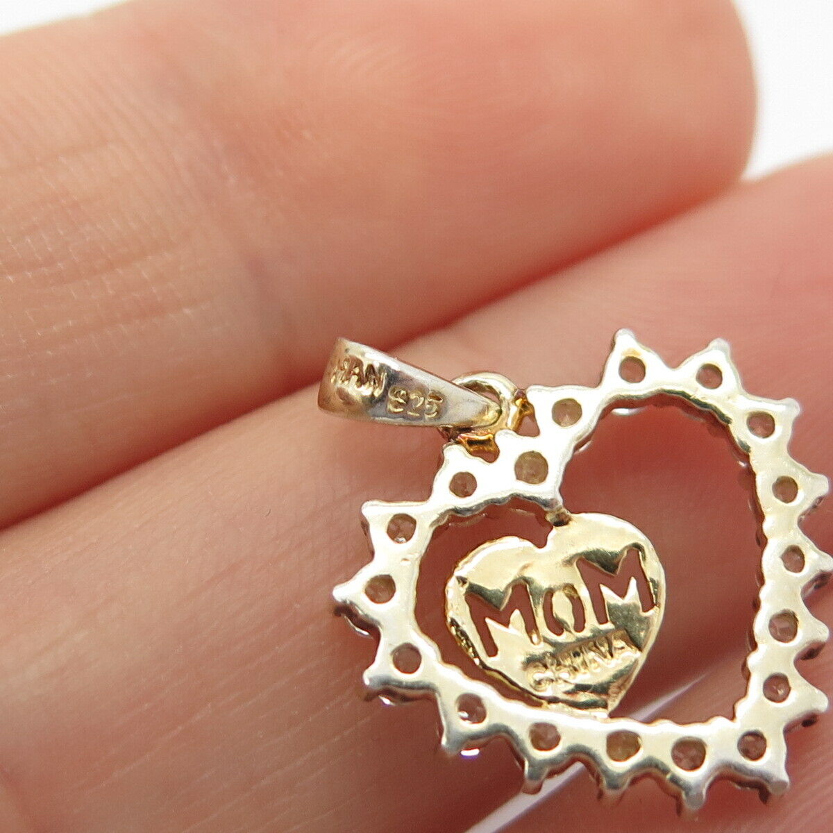925 Sterling Silver Gold Plated C Z "Mom" Open Heart Pendant