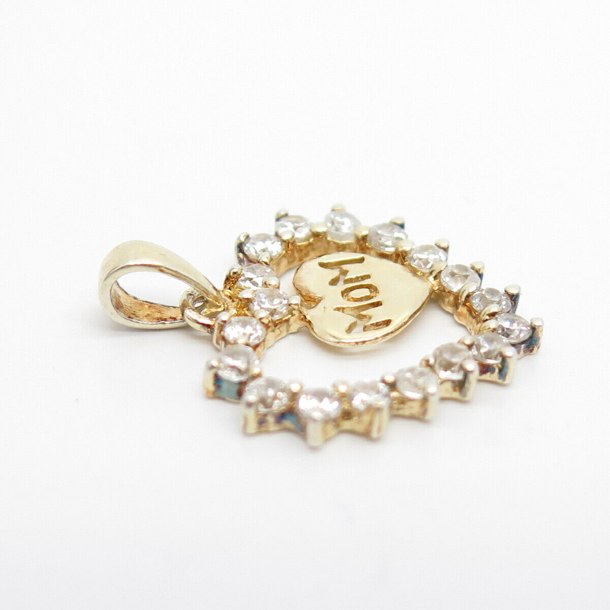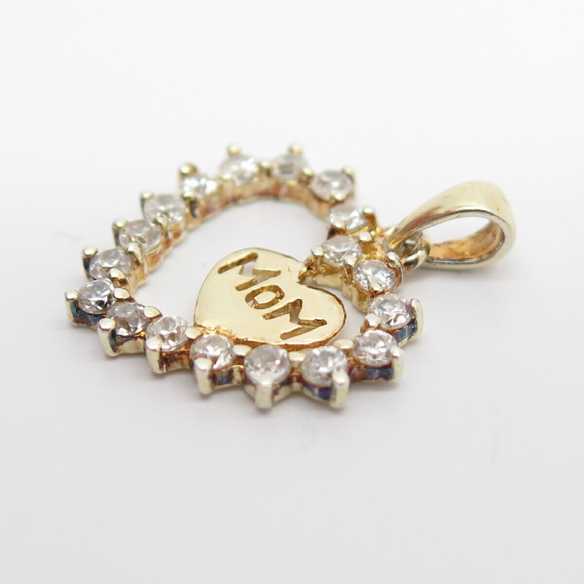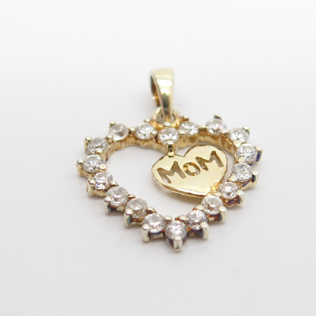 925 Sterling Silver Gold Plated C Z "Mom" Open Heart Pendant