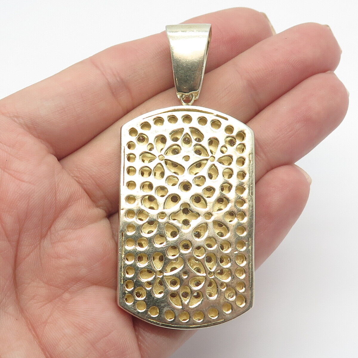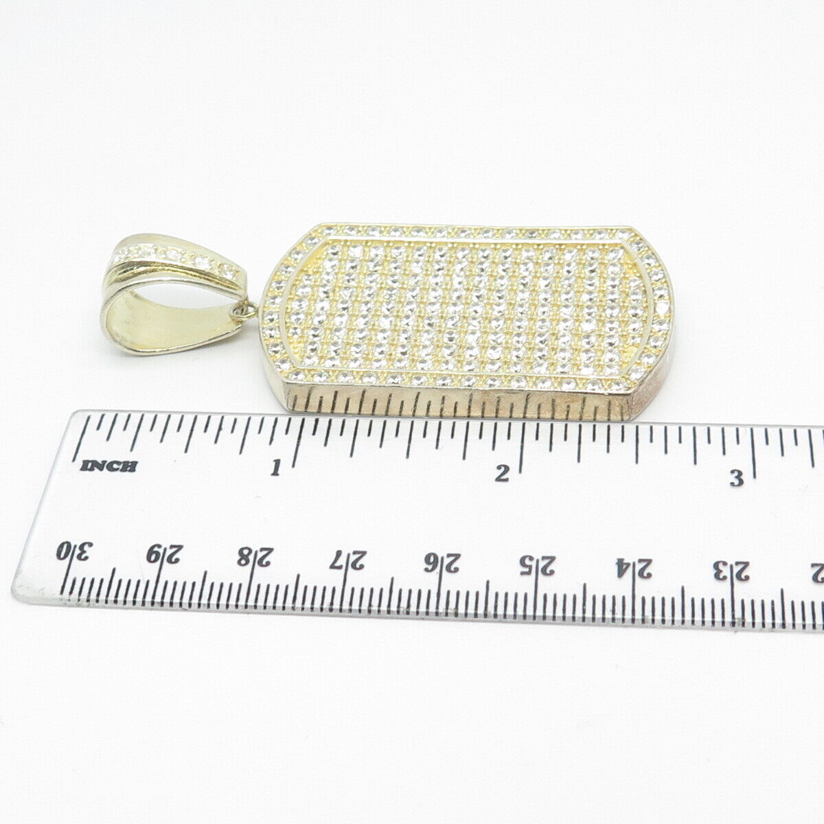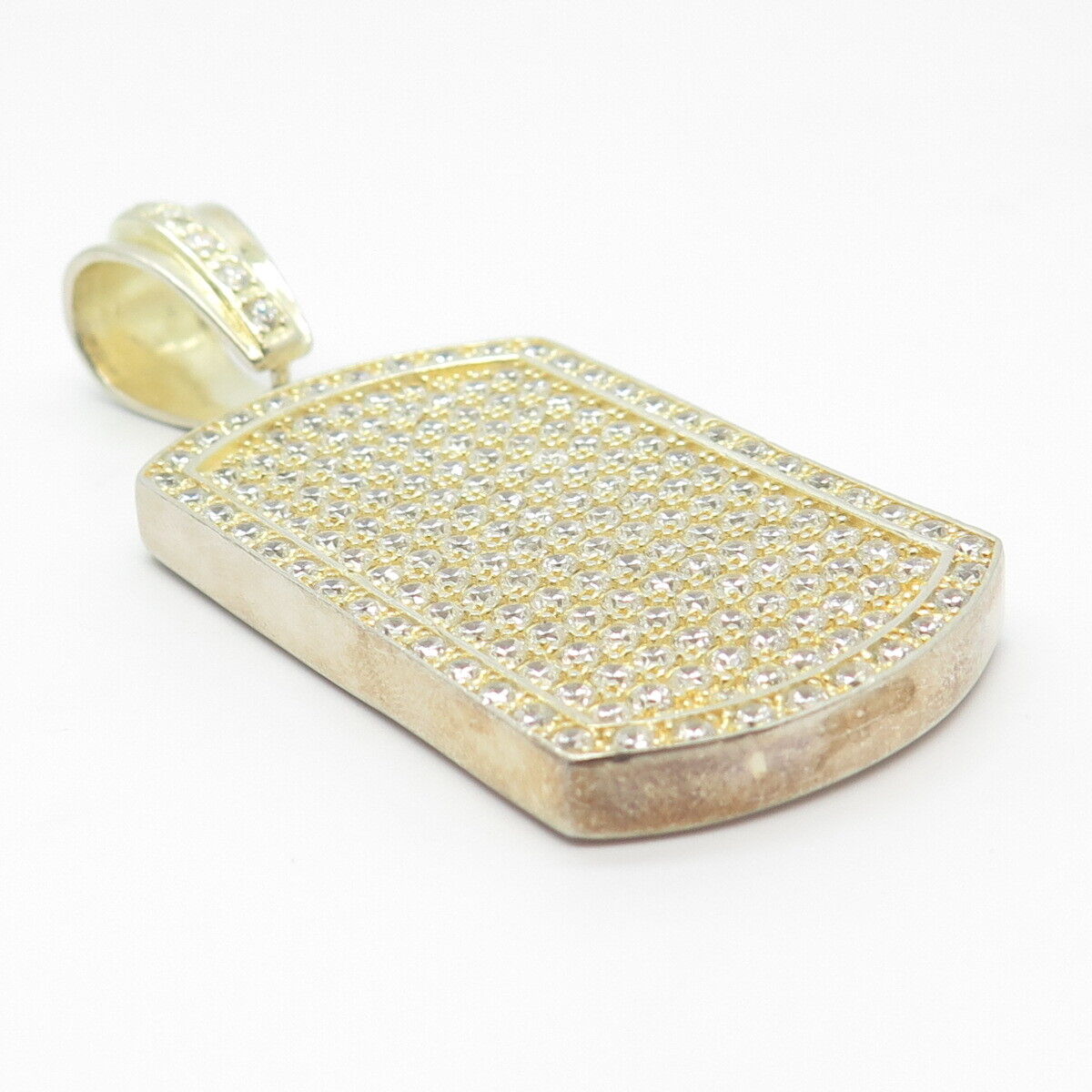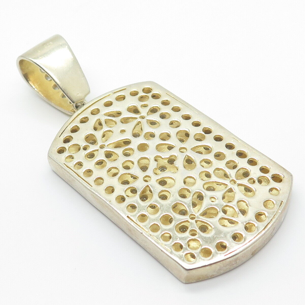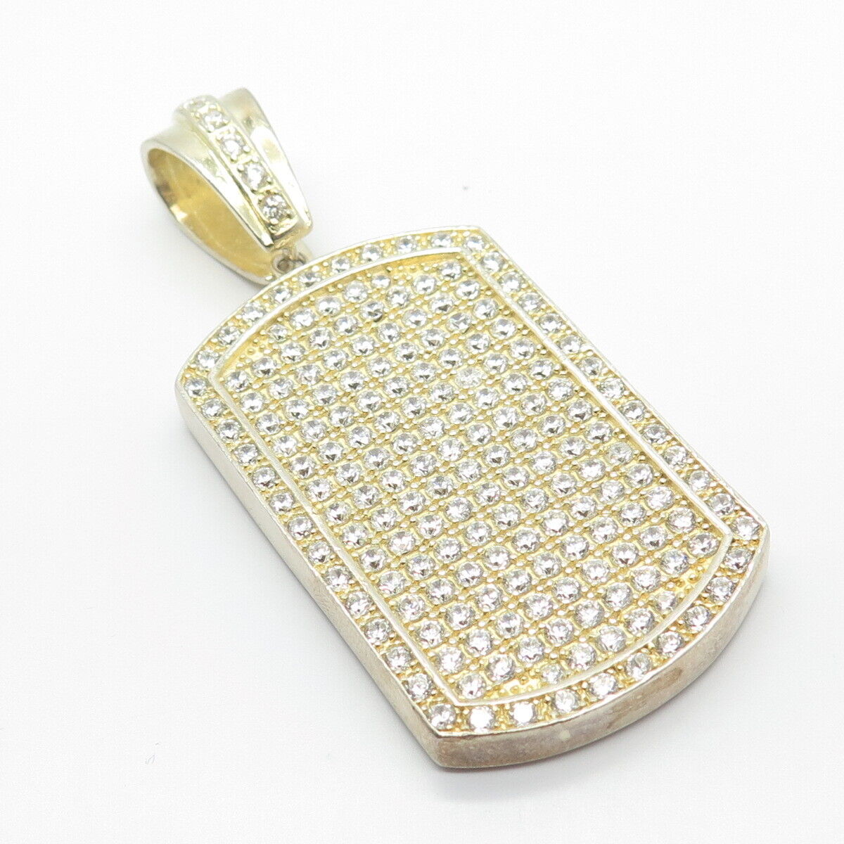 925 Sterling Silver Gold Plated C Z Rectangle Pendant