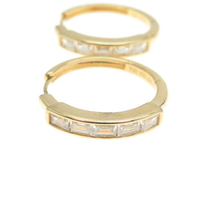 925 Sterling Silver Gold Plated Emerald-Cut Shaped C Z Huggie Earrings