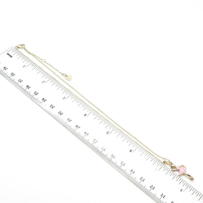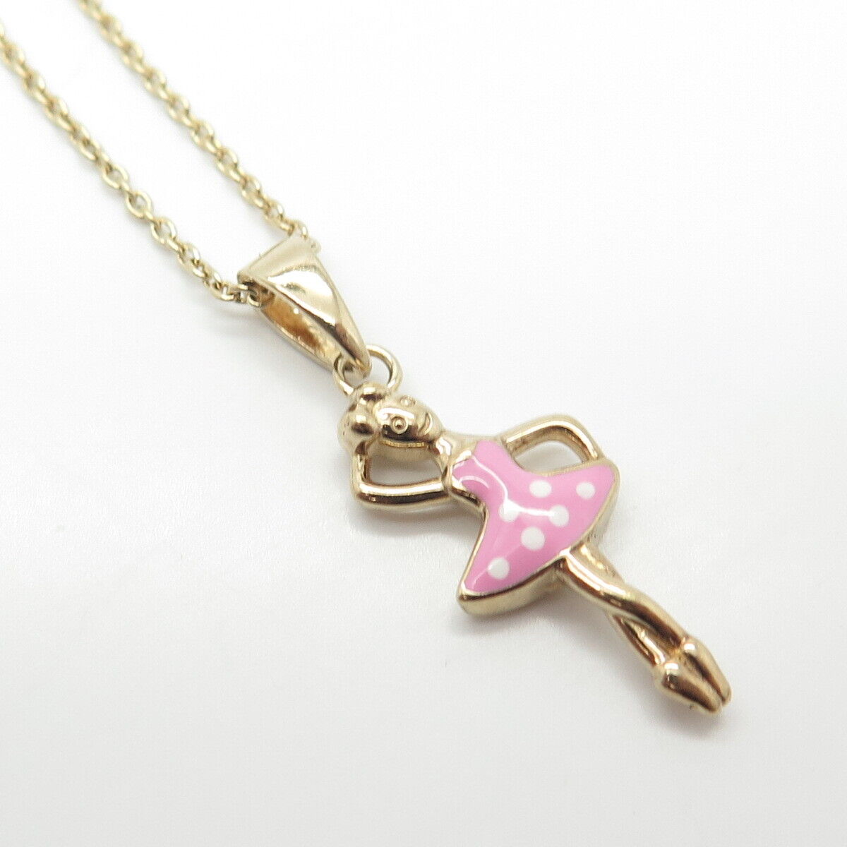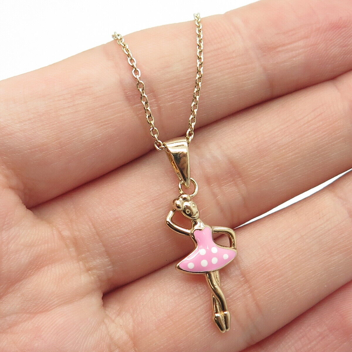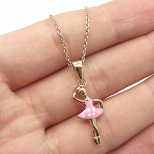 925 Sterling Silver Gold Plated Enamel Ballerina Girl Rolo Chain Necklace 14"