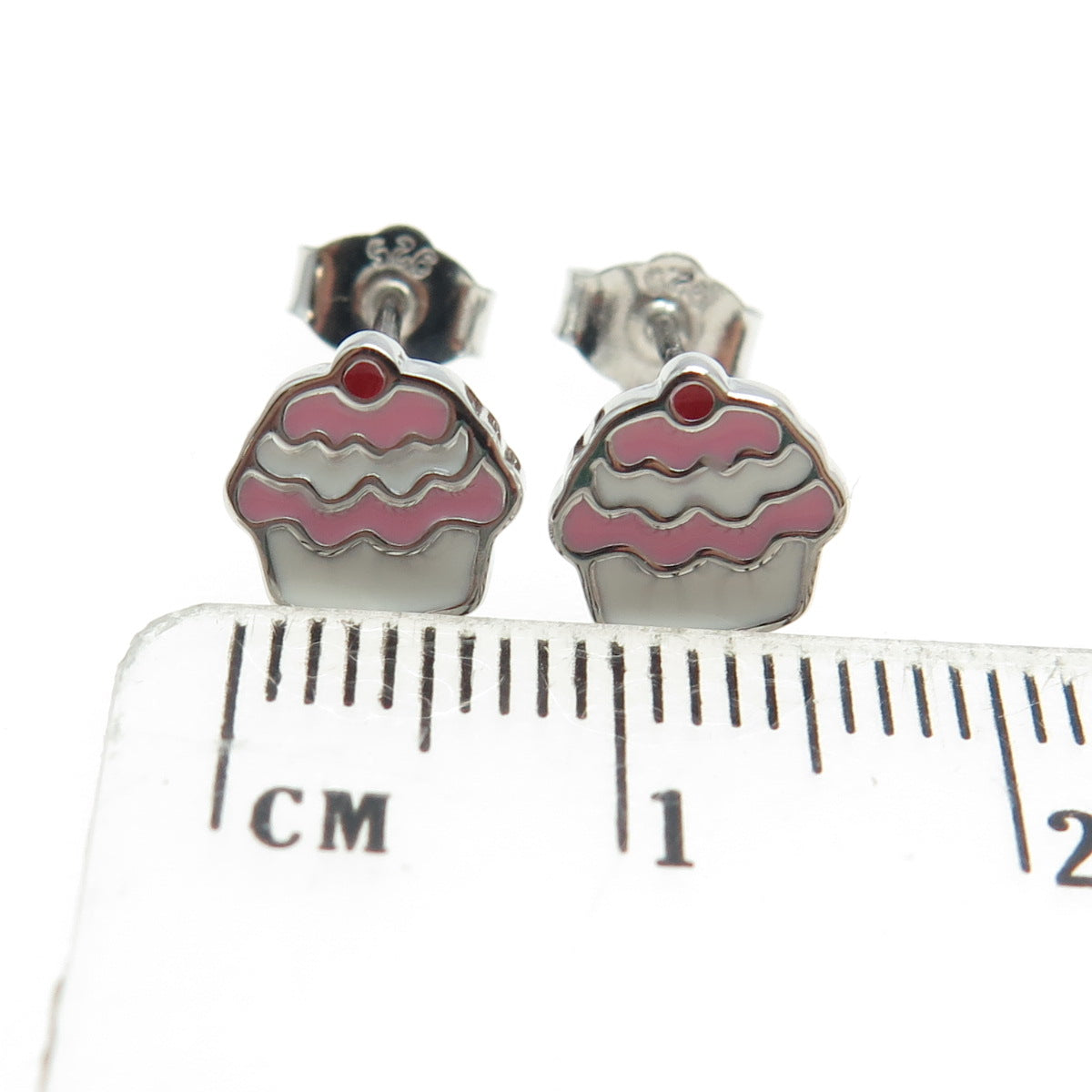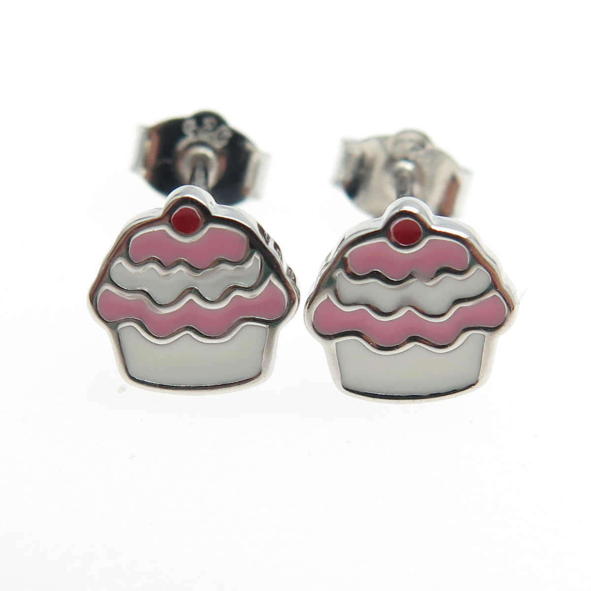 925 Sterling Silver Gold Plated Enamel Cupcake Stud Earrings
