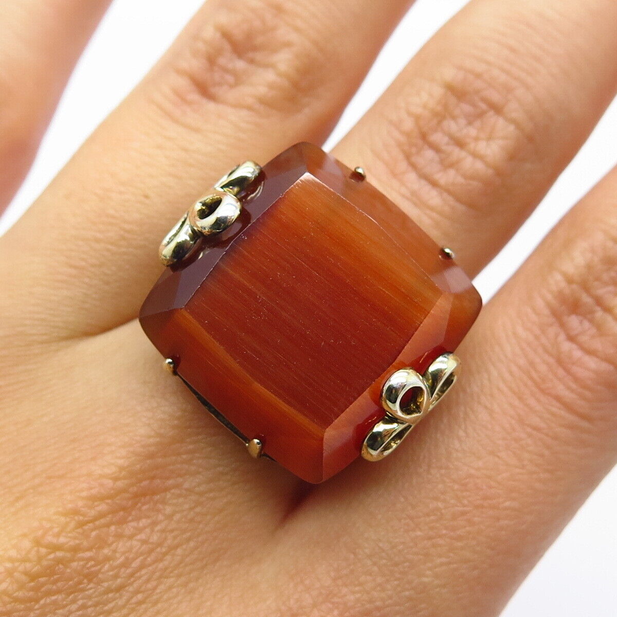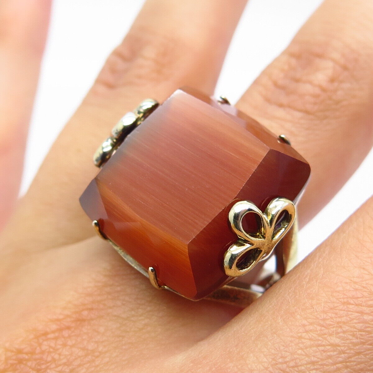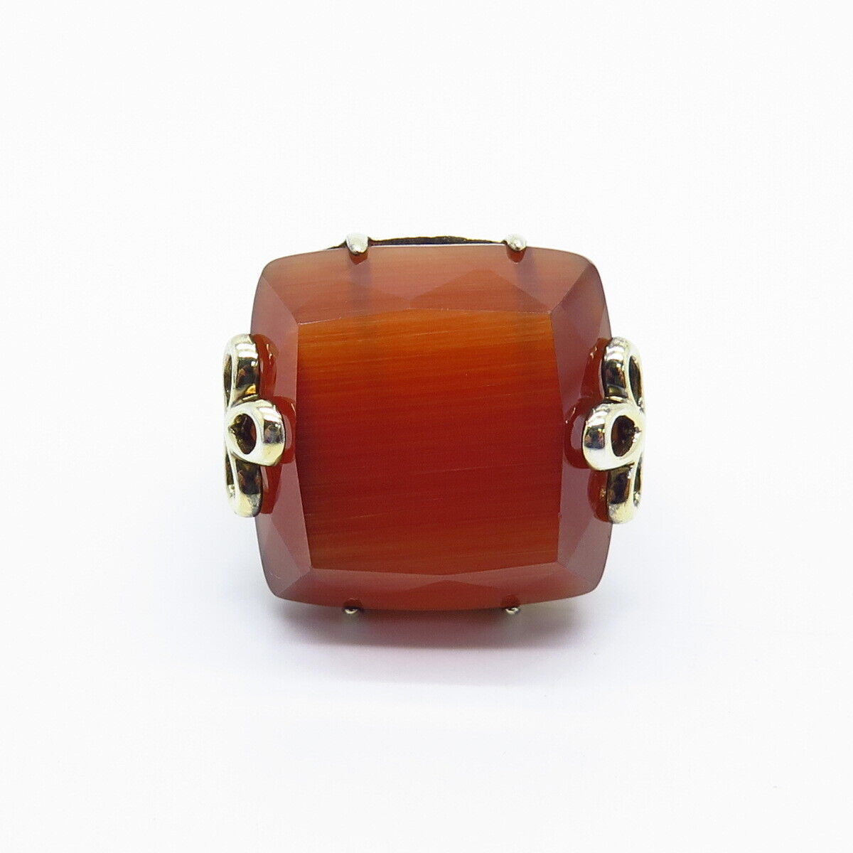 925 Sterling Silver Gold Plated Fiber Optic Cat's Eye Gem Square Ring Size 8