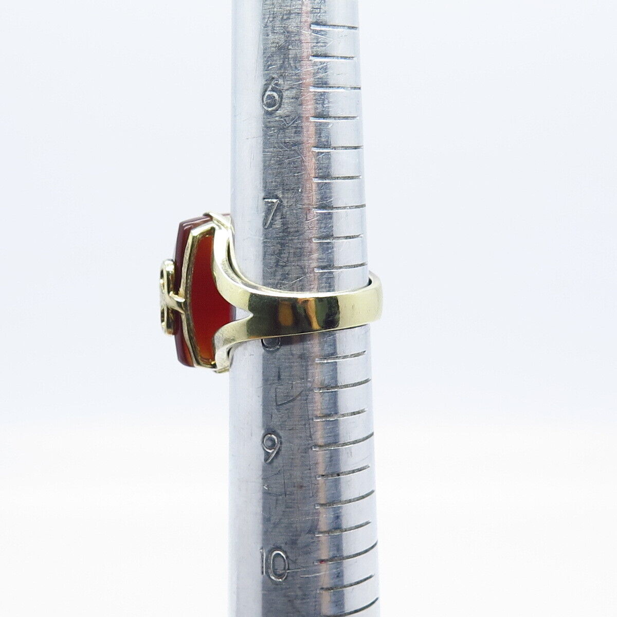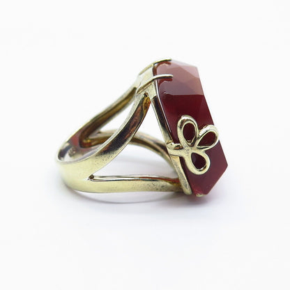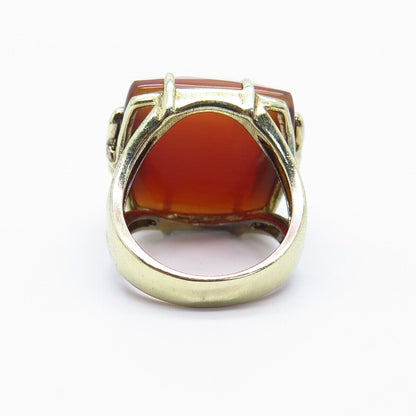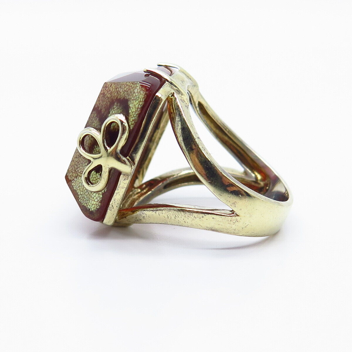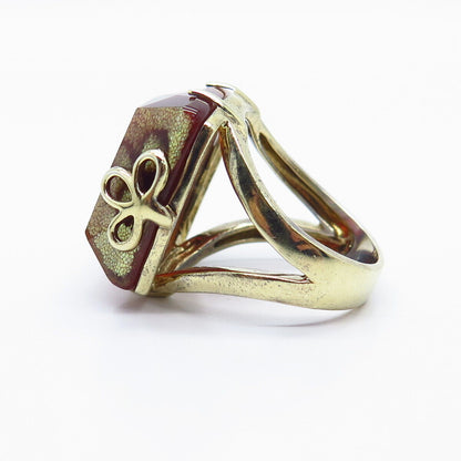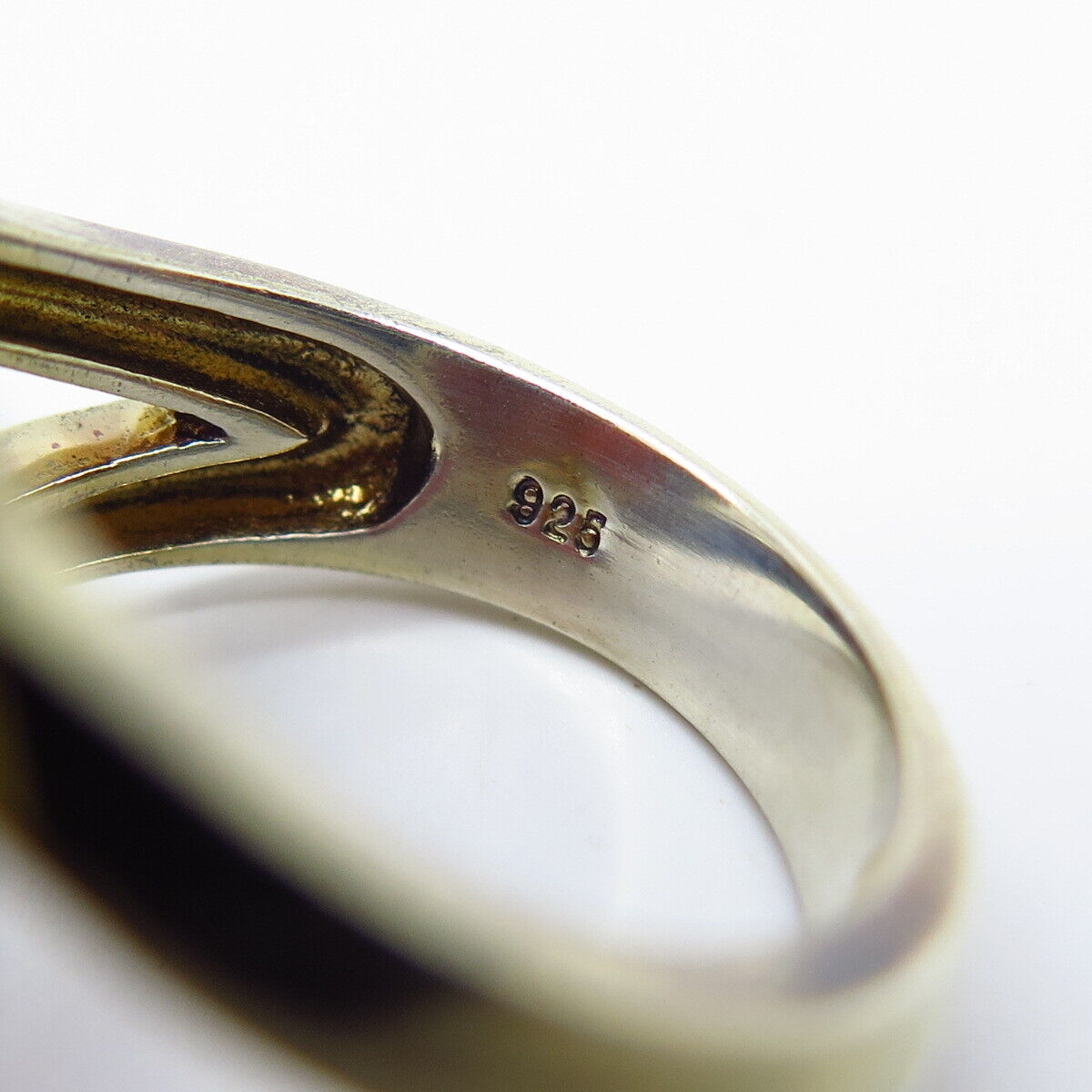 925 Sterling Silver Gold Plated Fiber Optic Cat's Eye Gem Square Ring Size 8