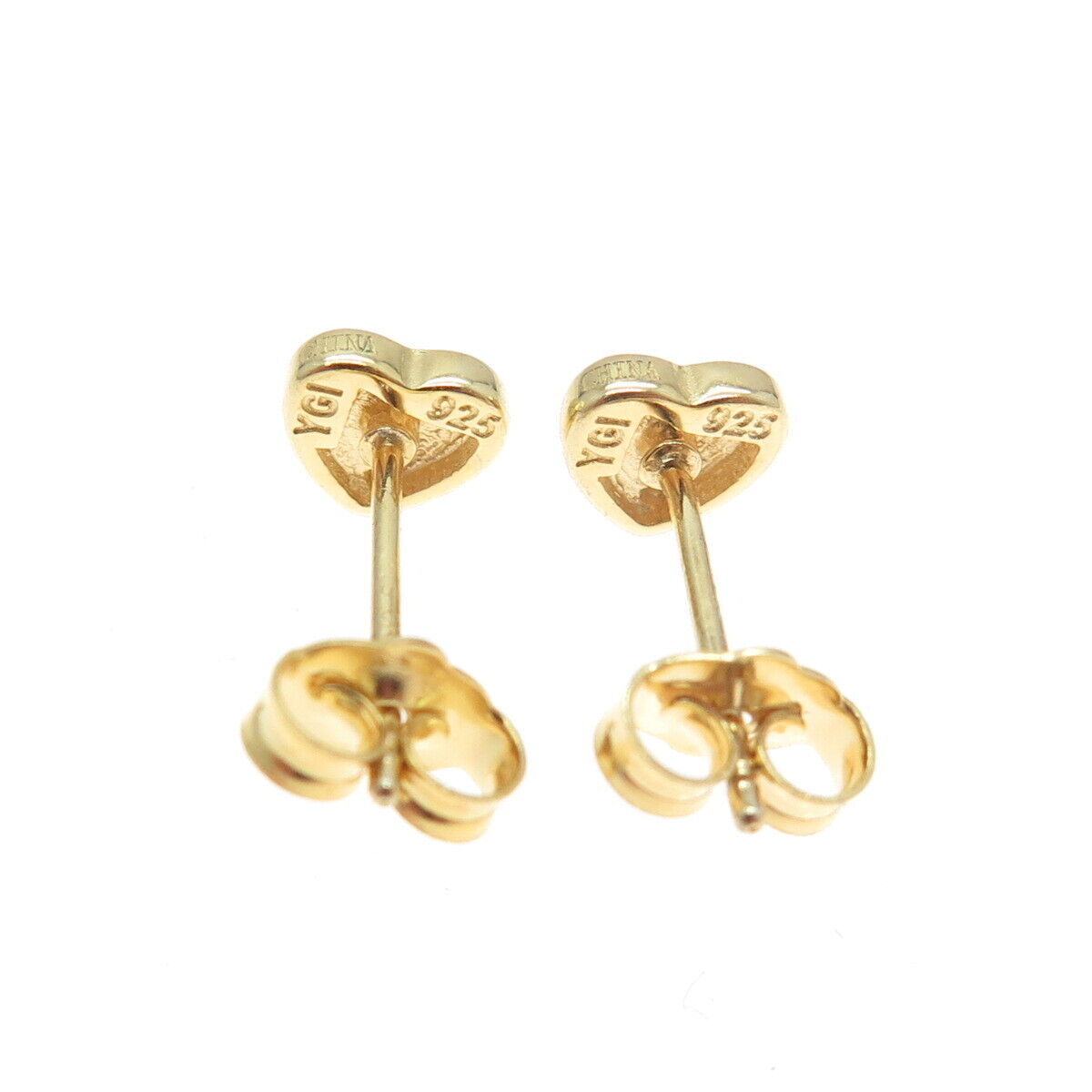 925 Sterling Silver Gold Plated Heart Stud Earrings