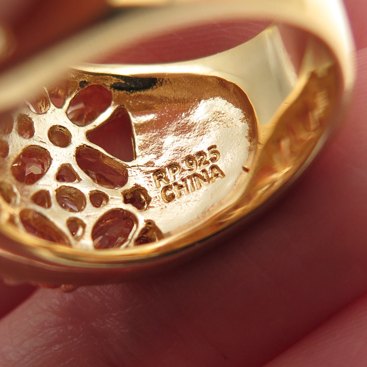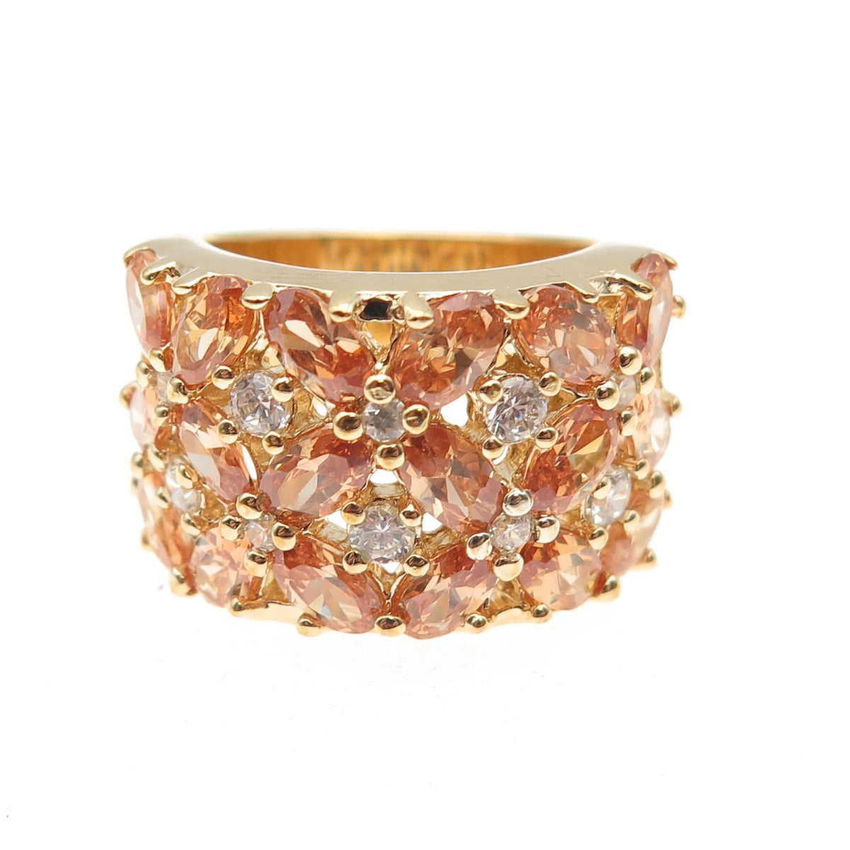 925 Sterling Silver Gold Plated Imperial & White C Z Cluster Ring Size 6
