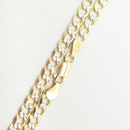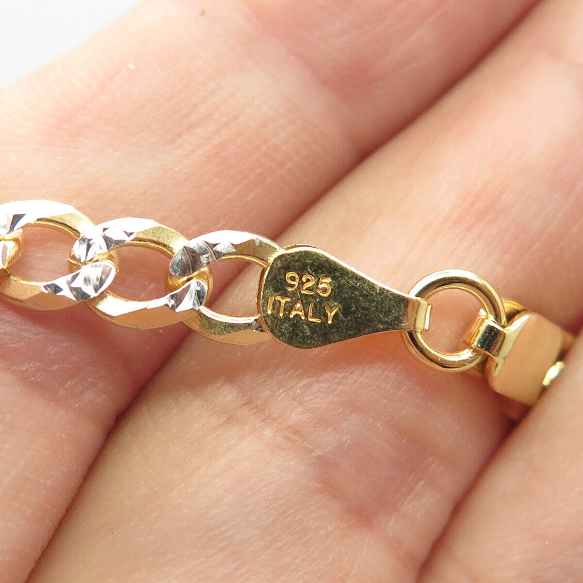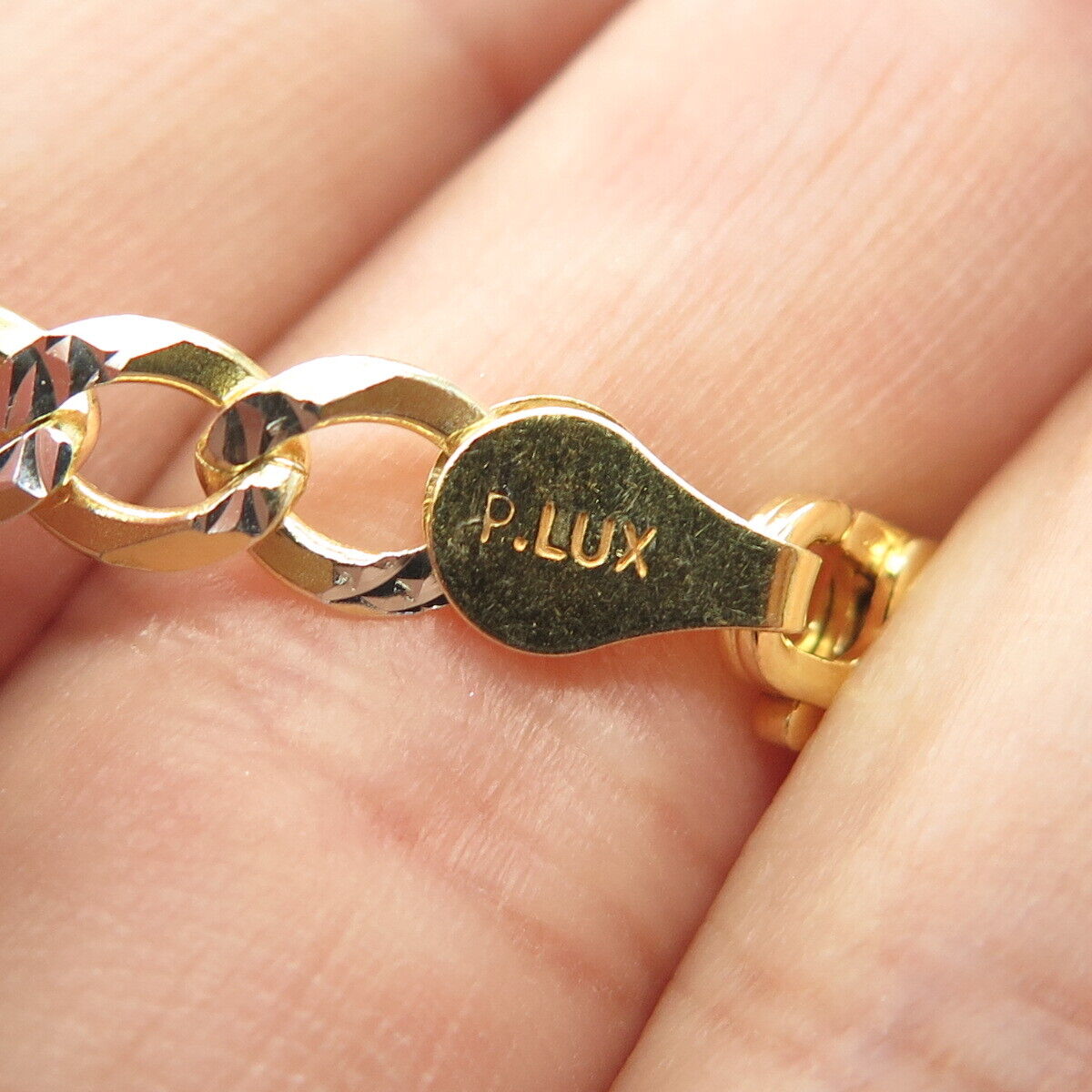 925 Sterling Silver Gold Plated Italy P.Lux Diamond-Cut Cuban Chain Necklace 22"