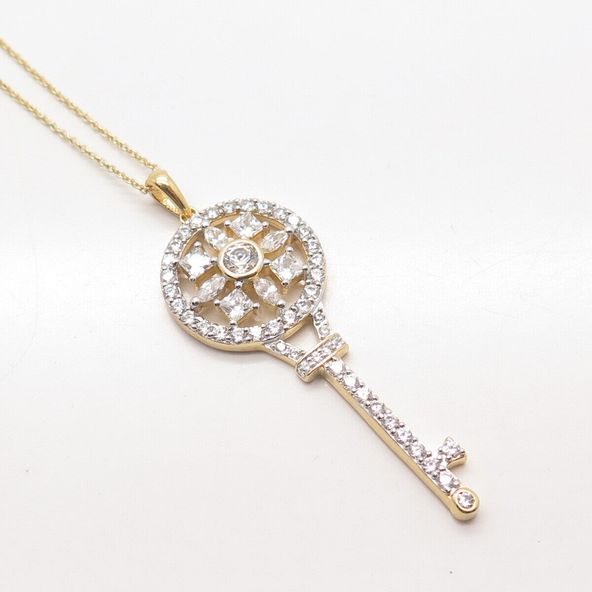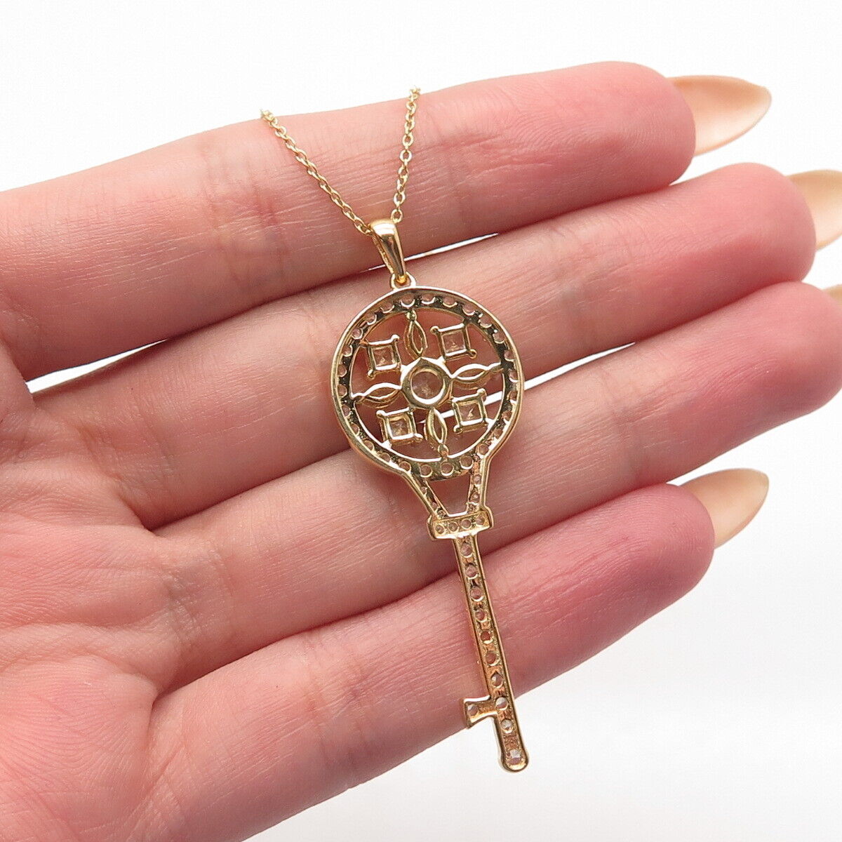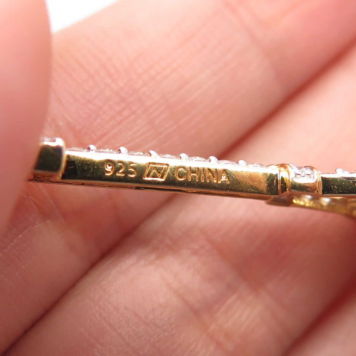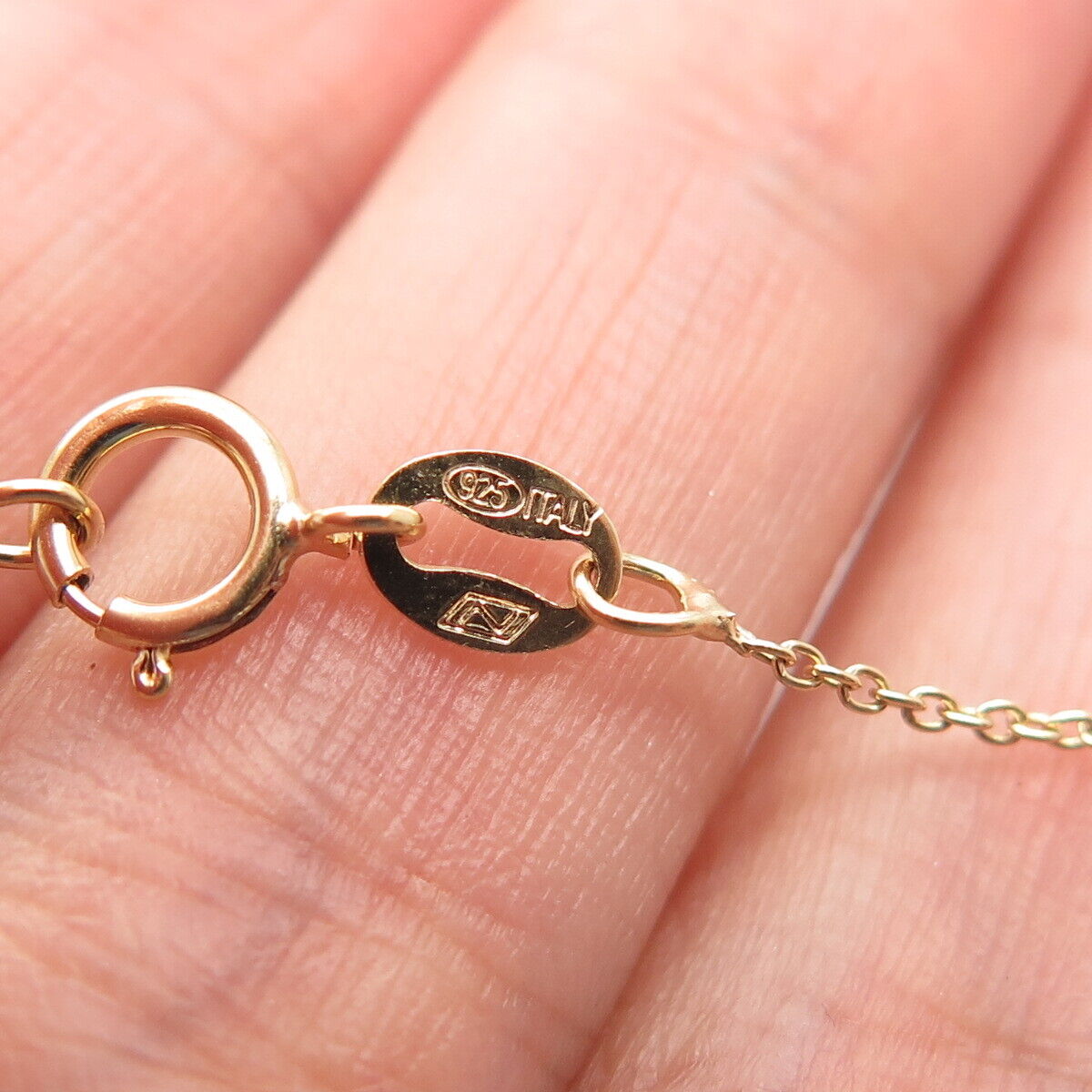 925 Sterling Silver Gold Plated Italy Pave C Z Rolo Chain Necklace 18"