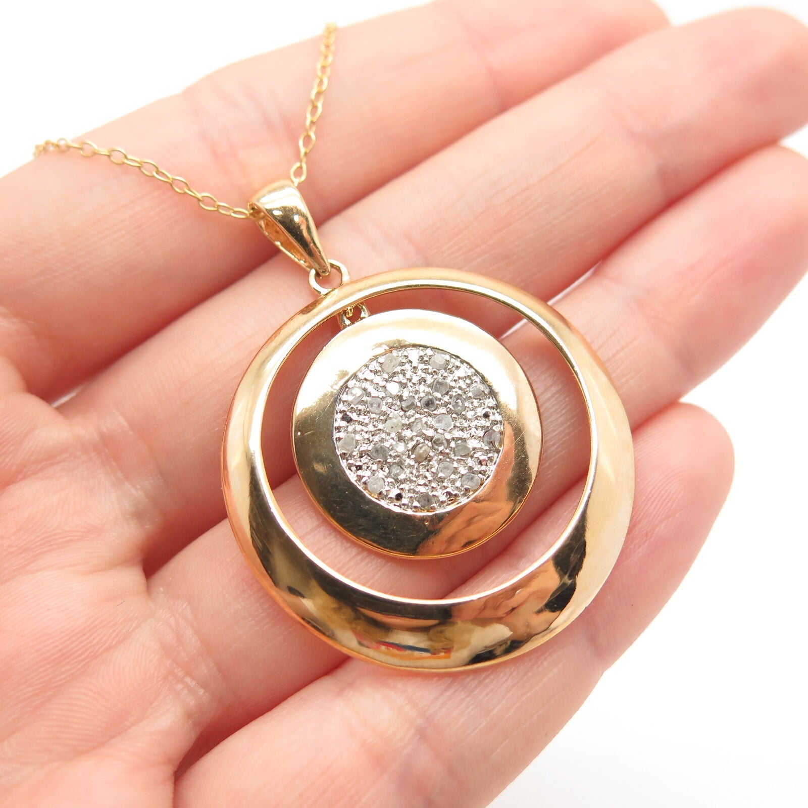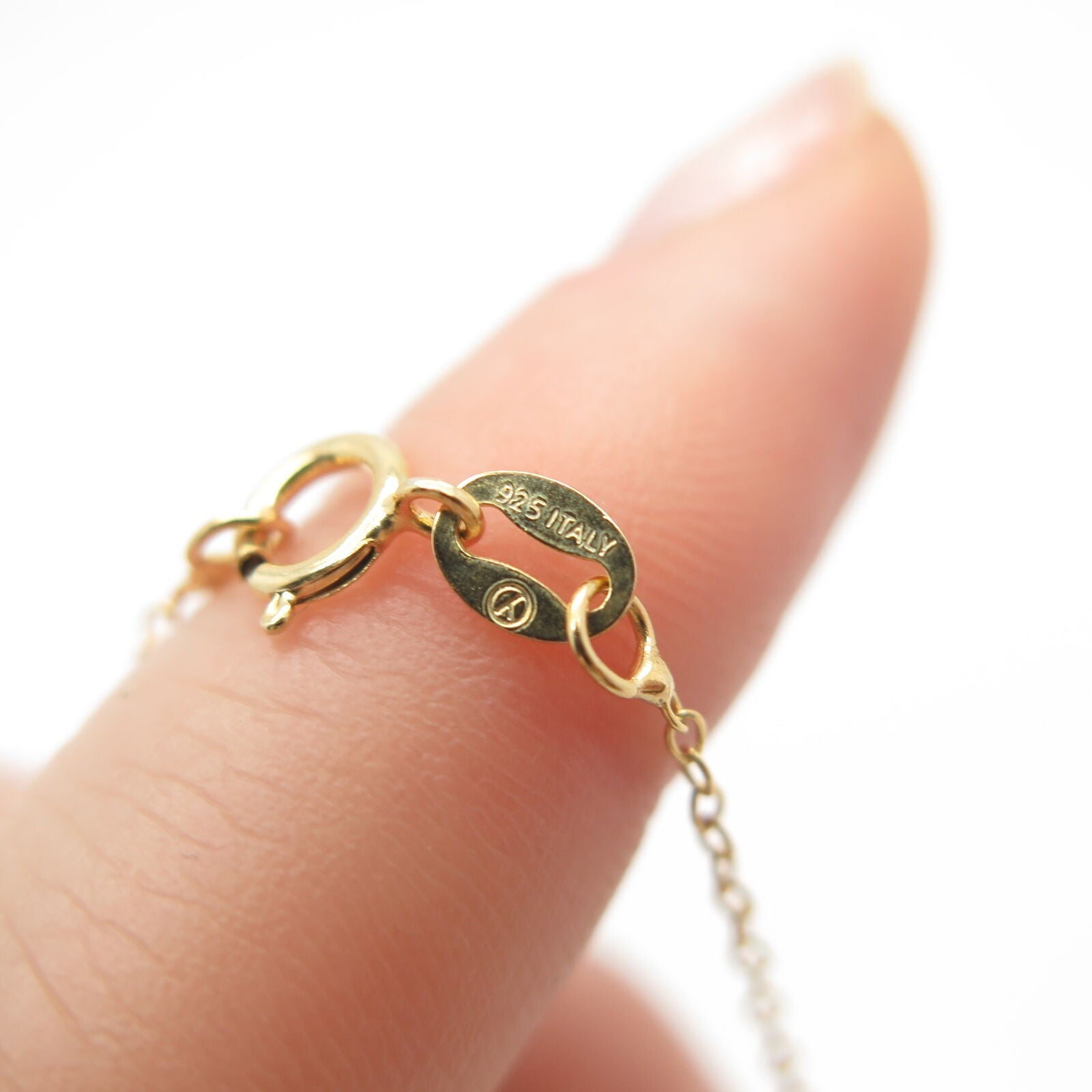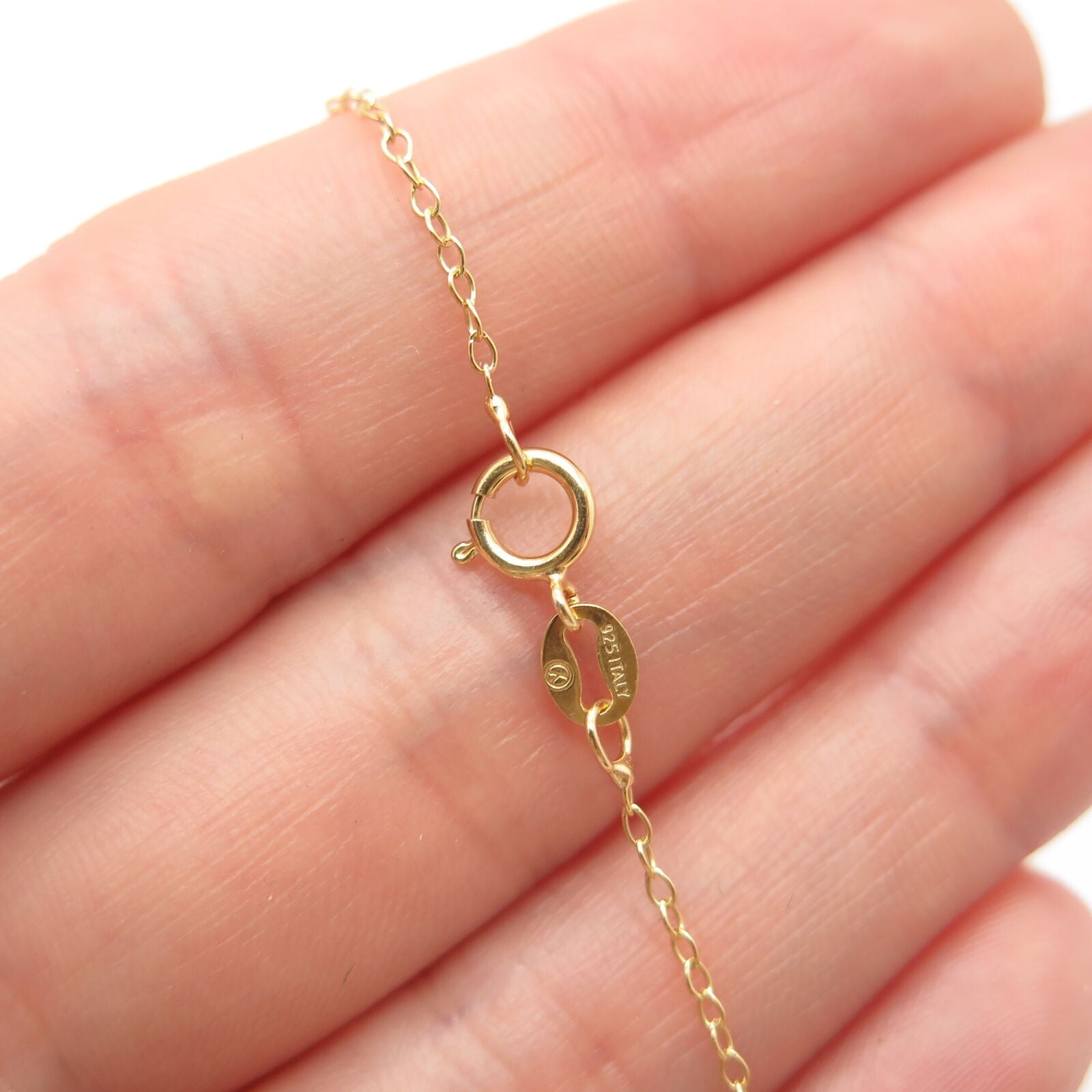 925 Sterling Silver Gold Plated Italy Real Diamond Rolo Chain Necklace 18”