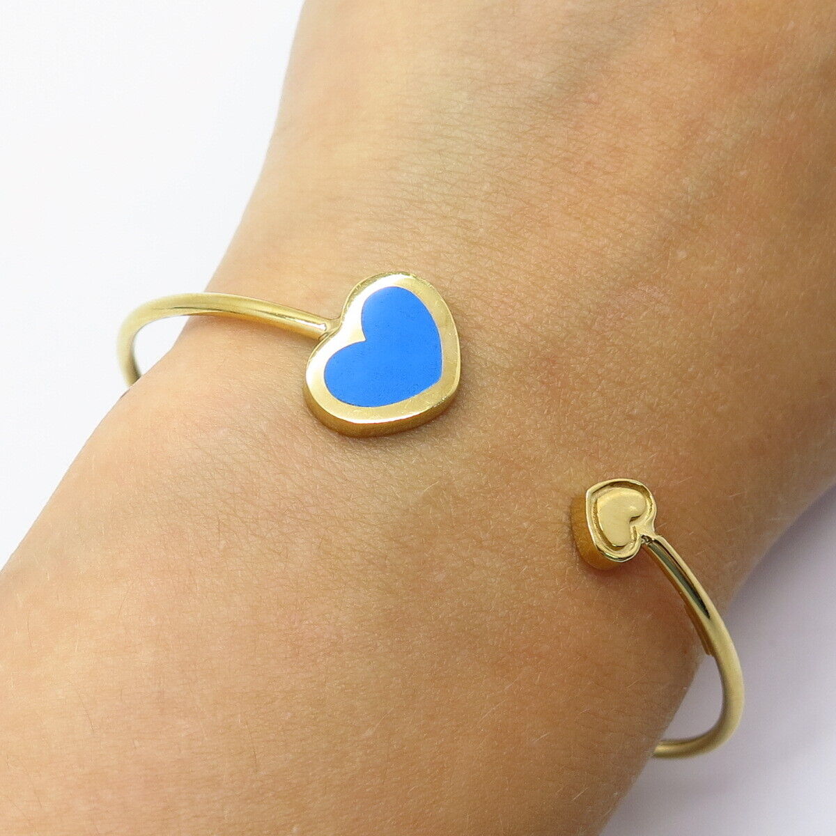 925 Sterling Silver Gold Plated Italy Turquoise Adjustable Cuff Bracelet 6.5"