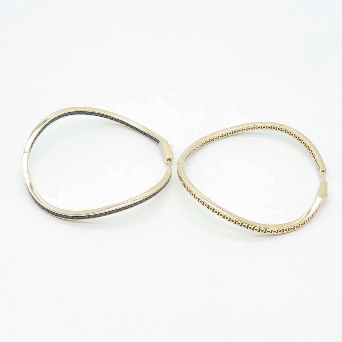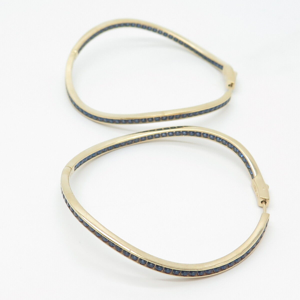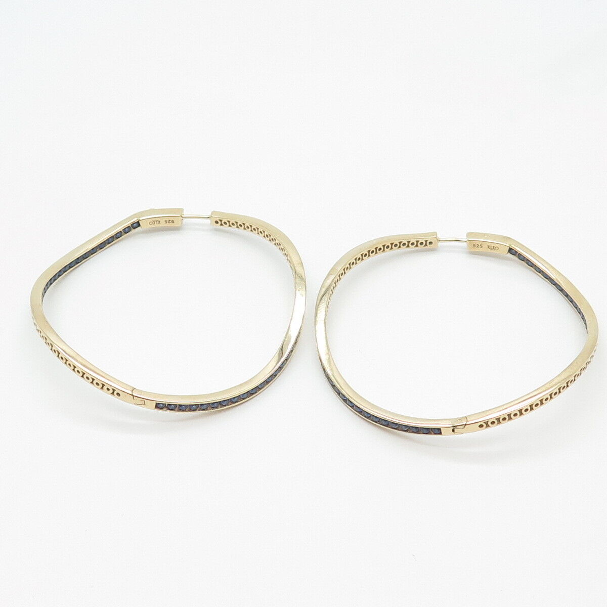 925 Sterling Silver Gold Plated KLEO Blue C Z Curved Hinged Hoop Earrings