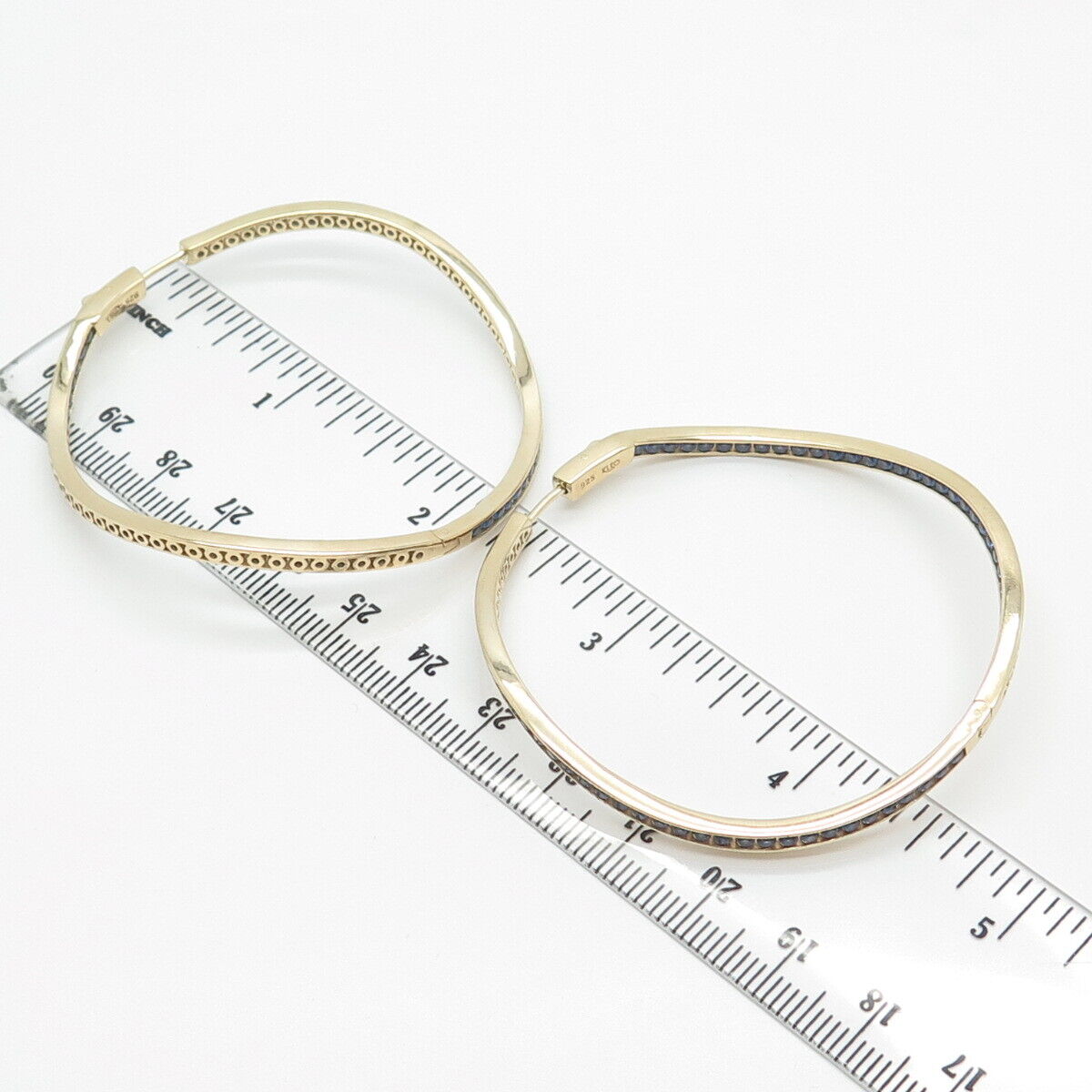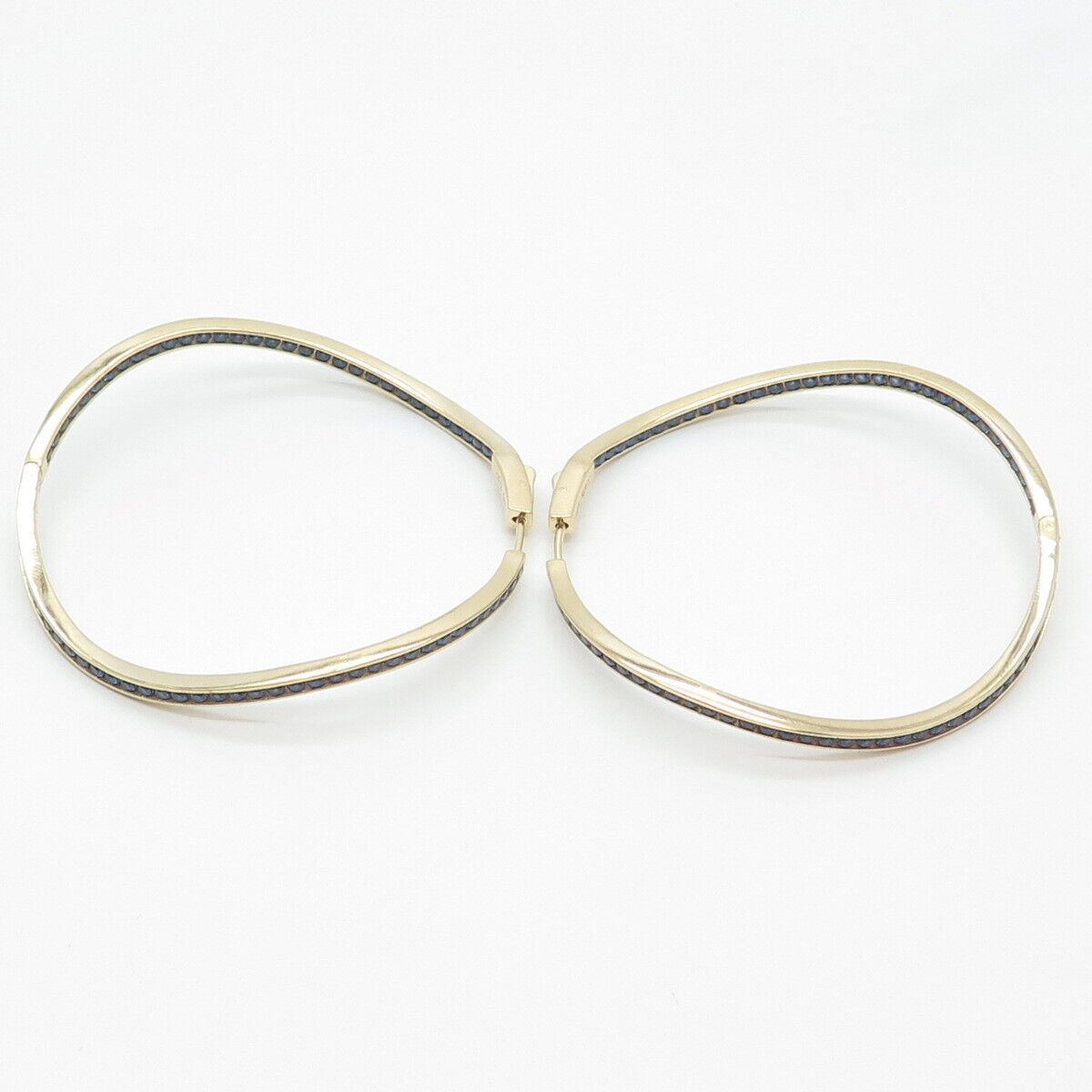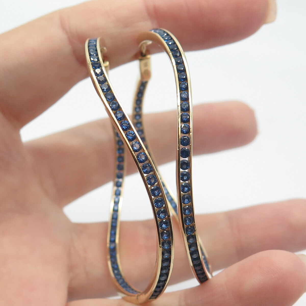 925 Sterling Silver Gold Plated KLEO Blue C Z Curved Hinged Hoop Earrings