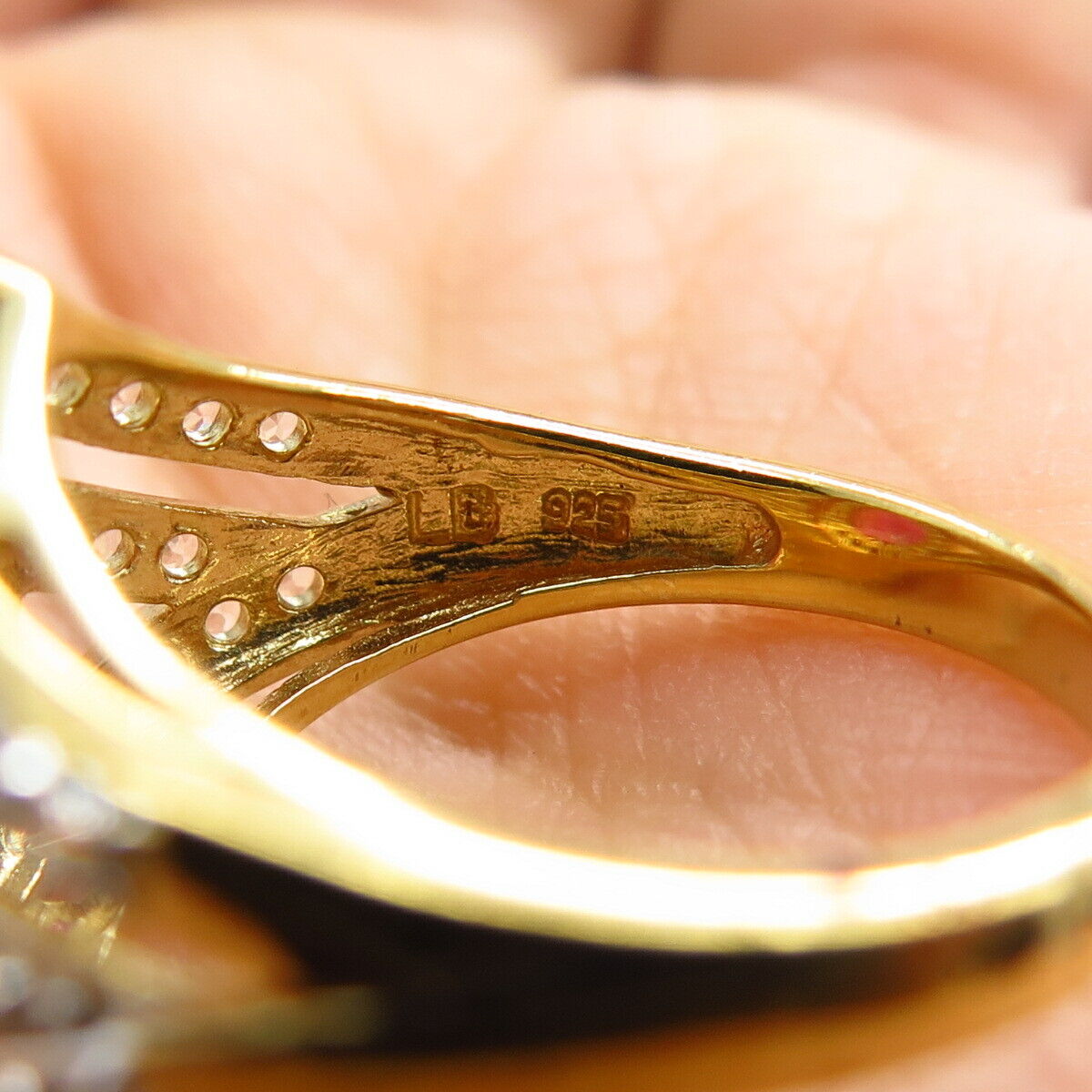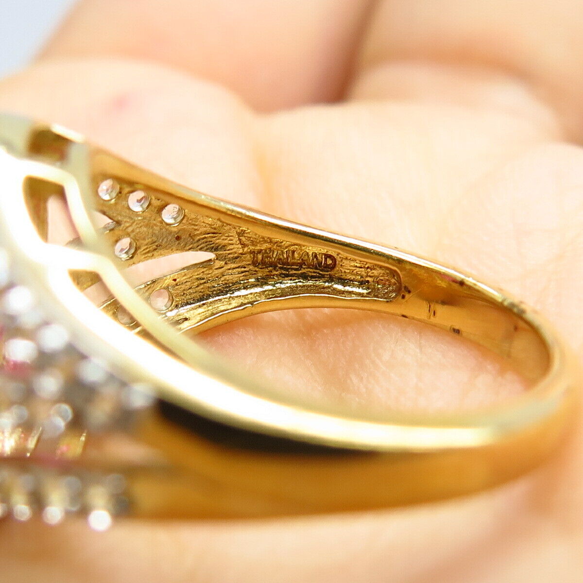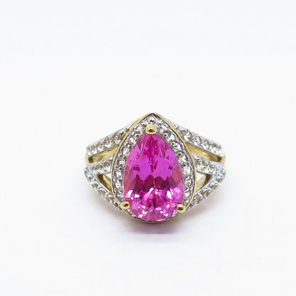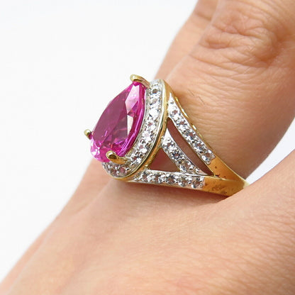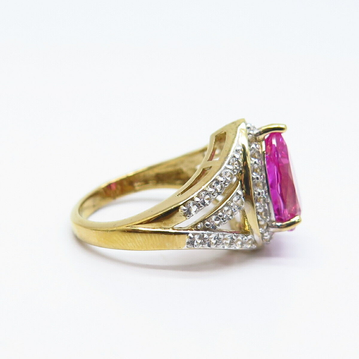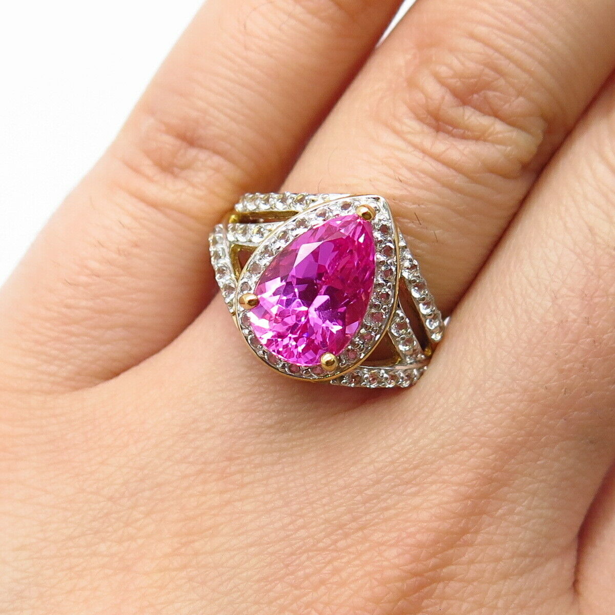 925 Sterling Silver Gold Plated Lab-Created Pink Sapphire Ring Size 6