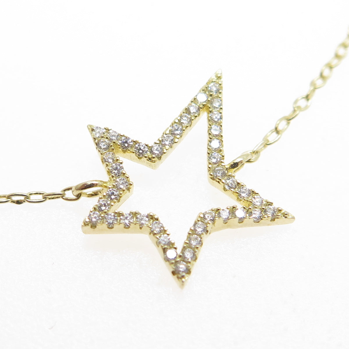 925 Sterling Silver Gold Plated Pave C Z Open Star Cable Link Bracelet 8.25"