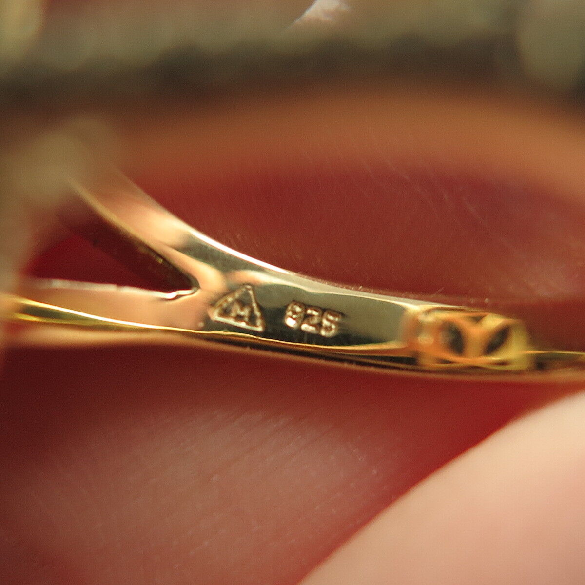 925 Sterling Silver Gold Plated Real Black Spinel Gemstone & C Z Ring Size 7.75