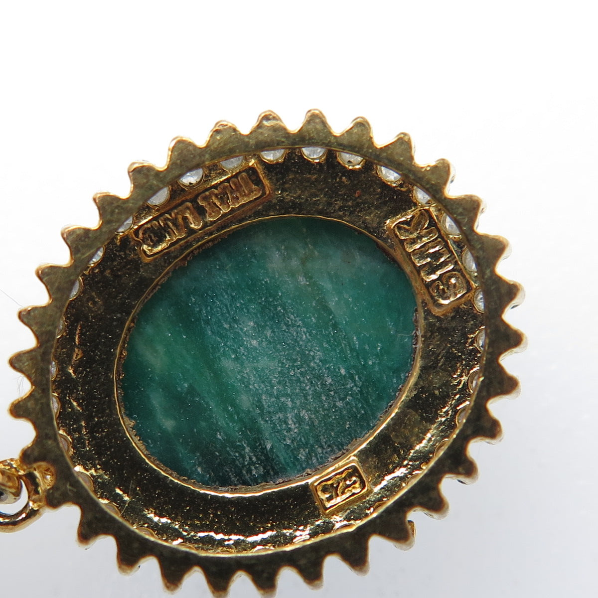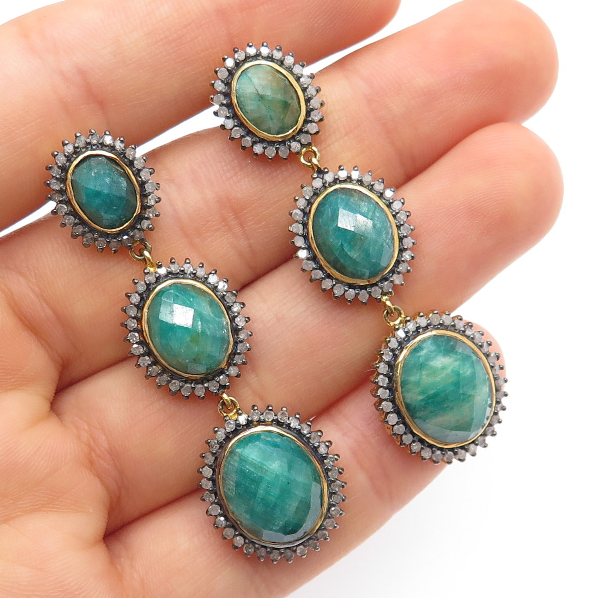 925 Sterling Silver Gold Plated Real Diamond & Emerald Dangle Earrings