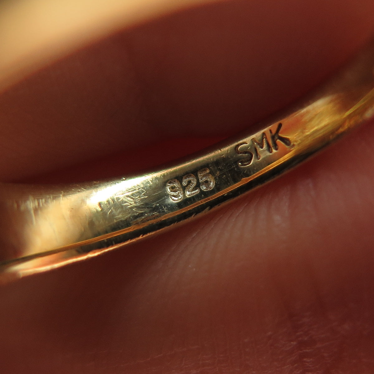 925 Sterling Silver Gold Plated Real Diamond & Green Amethyst Ring Size 6.75