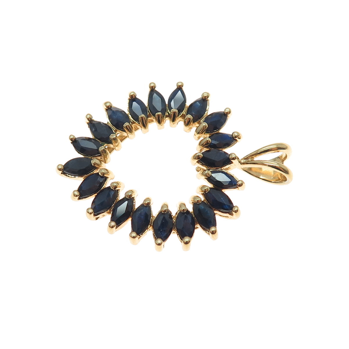 925 Sterling Silver Gold Plated Real Marquise-Cut Sapphire Heart Charm Pendant