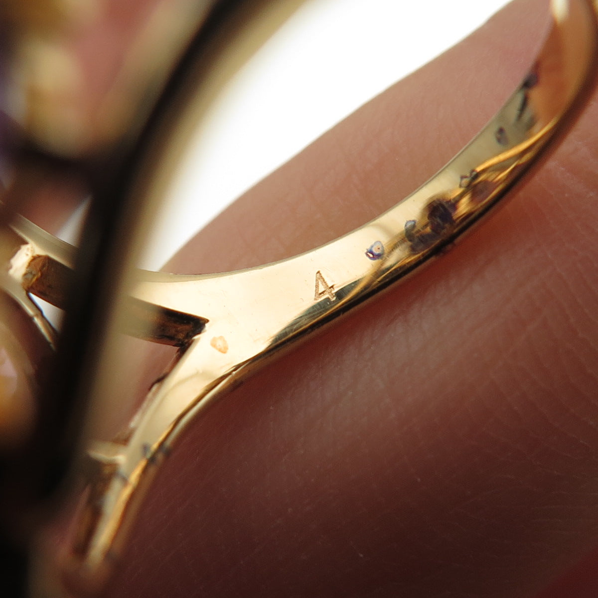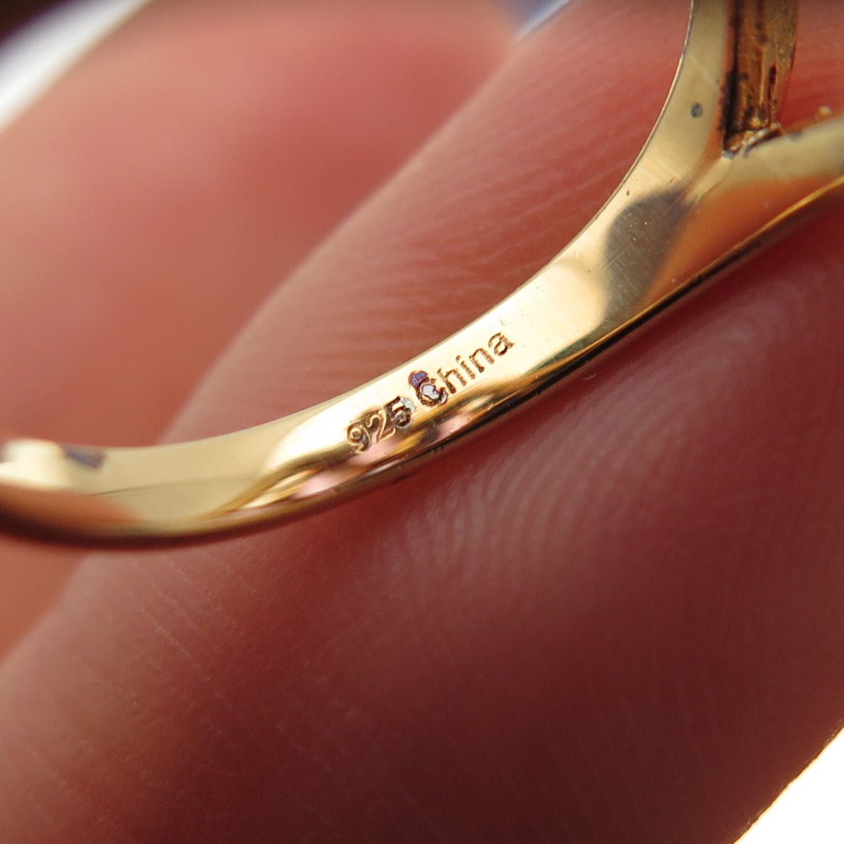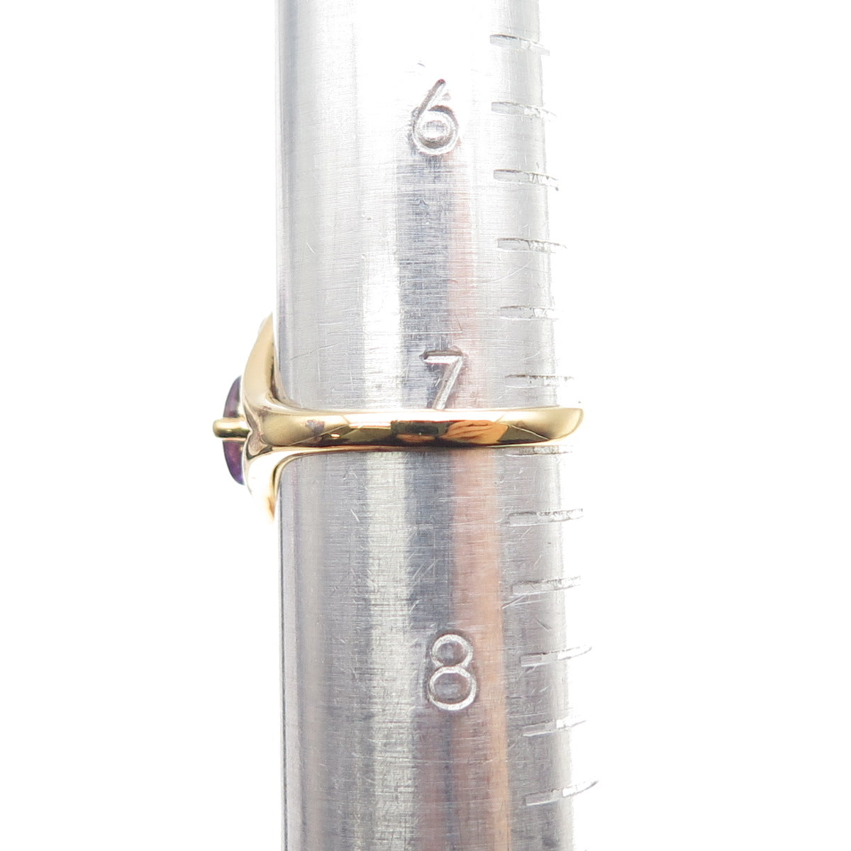 925 Sterling Silver Gold Plated Real Oval-Cut Amethyst Cluster Ring Size 7.25