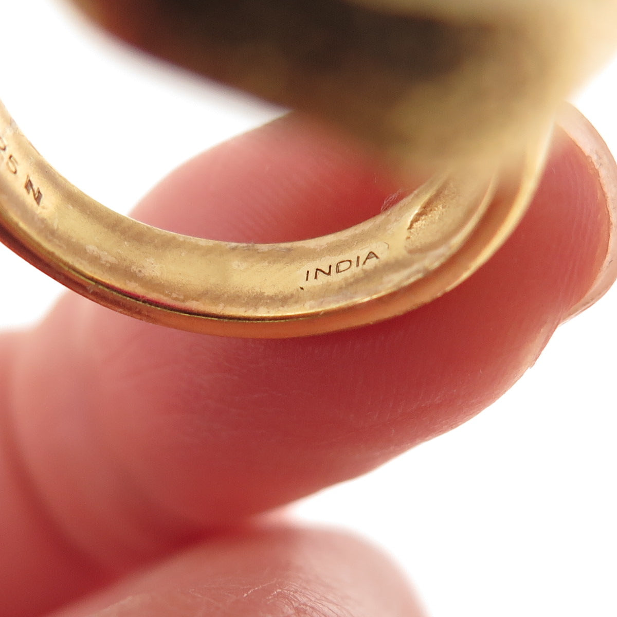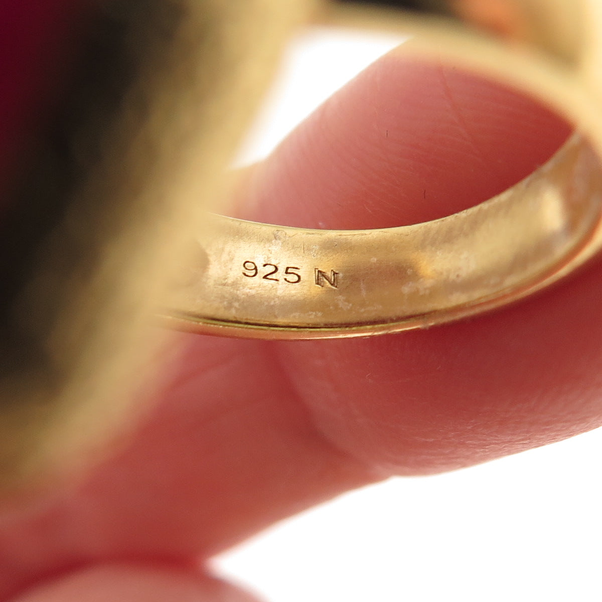 925 Sterling Silver Gold Plated Real Pink Quartz Modernist Ring Size 7.25