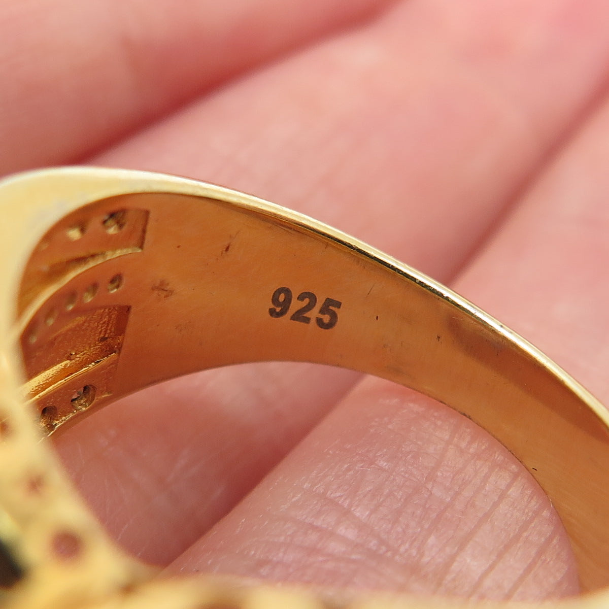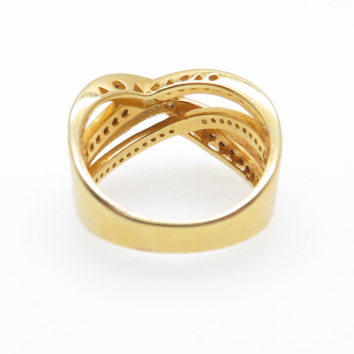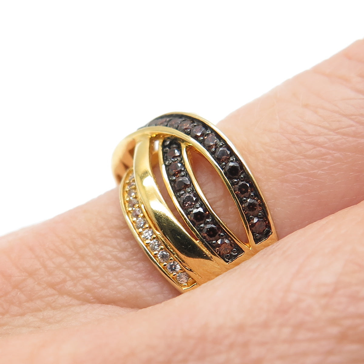 925 Sterling Silver Gold Plated Real Smoky Quartz C Z Crisscross Ring Size 7.25