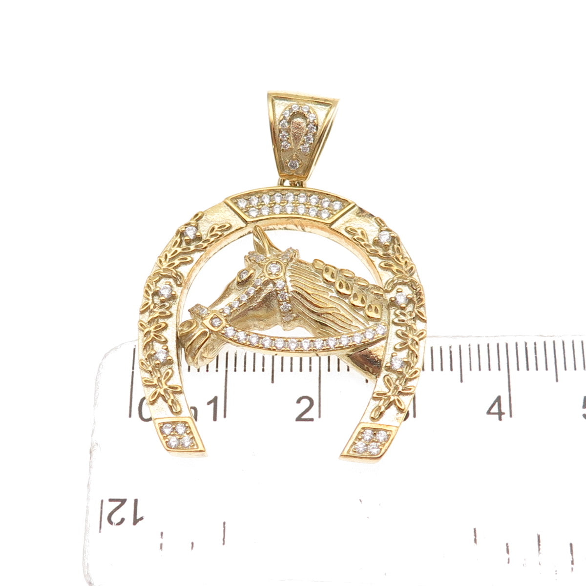 925 Sterling Silver Gold Plated Round-Cut C Z Horse & Horseshoe Pendant