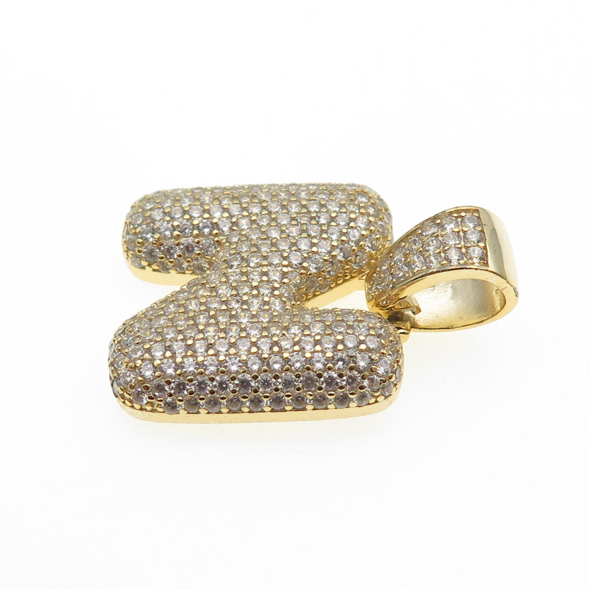 925 Sterling Silver Gold Plated Round-Cut C Z Letter N Initial Pendant