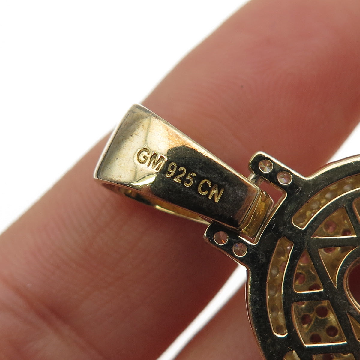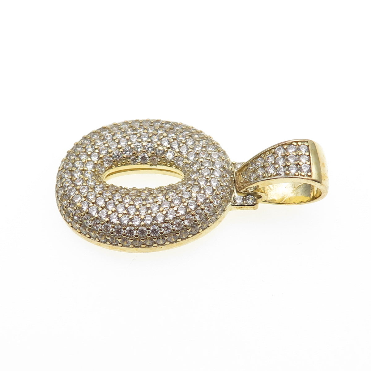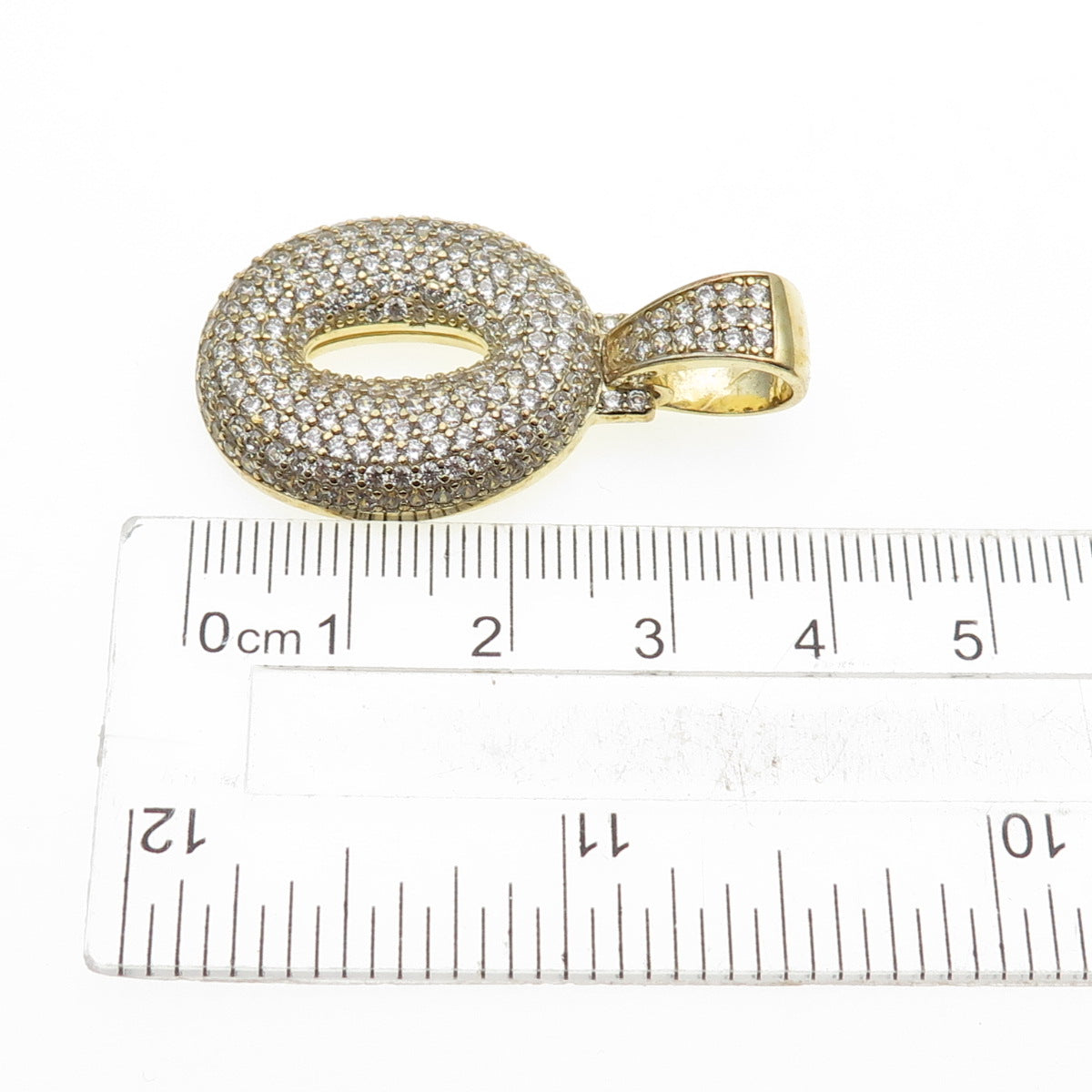 925 Sterling Silver Gold Plated Round-Cut C Z Letter O Initial Pendant