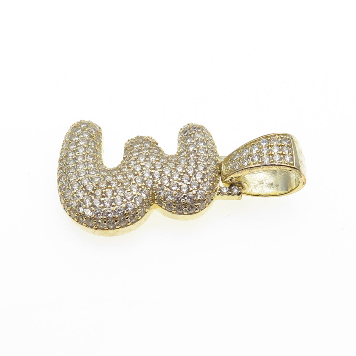 925 Sterling Silver Gold Plated Round-Cut C Z Number 3 Lucky Pendant
