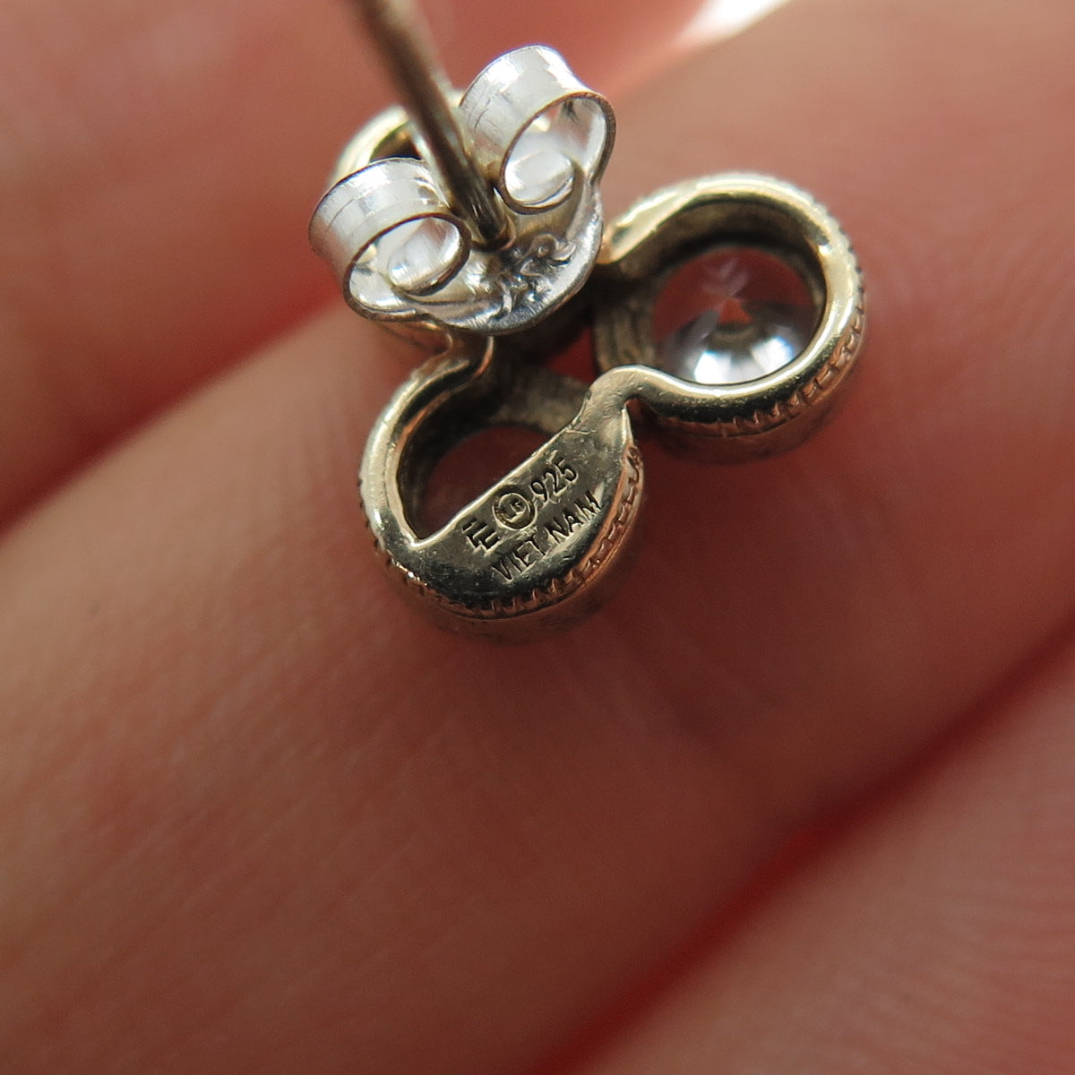 925 Sterling Silver Gold Plated Round-Cut C Z Stud Earrings