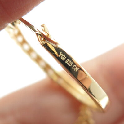 925 Sterling Silver Gold Plated Round-Cut C Z Tassel Hoop Earrings