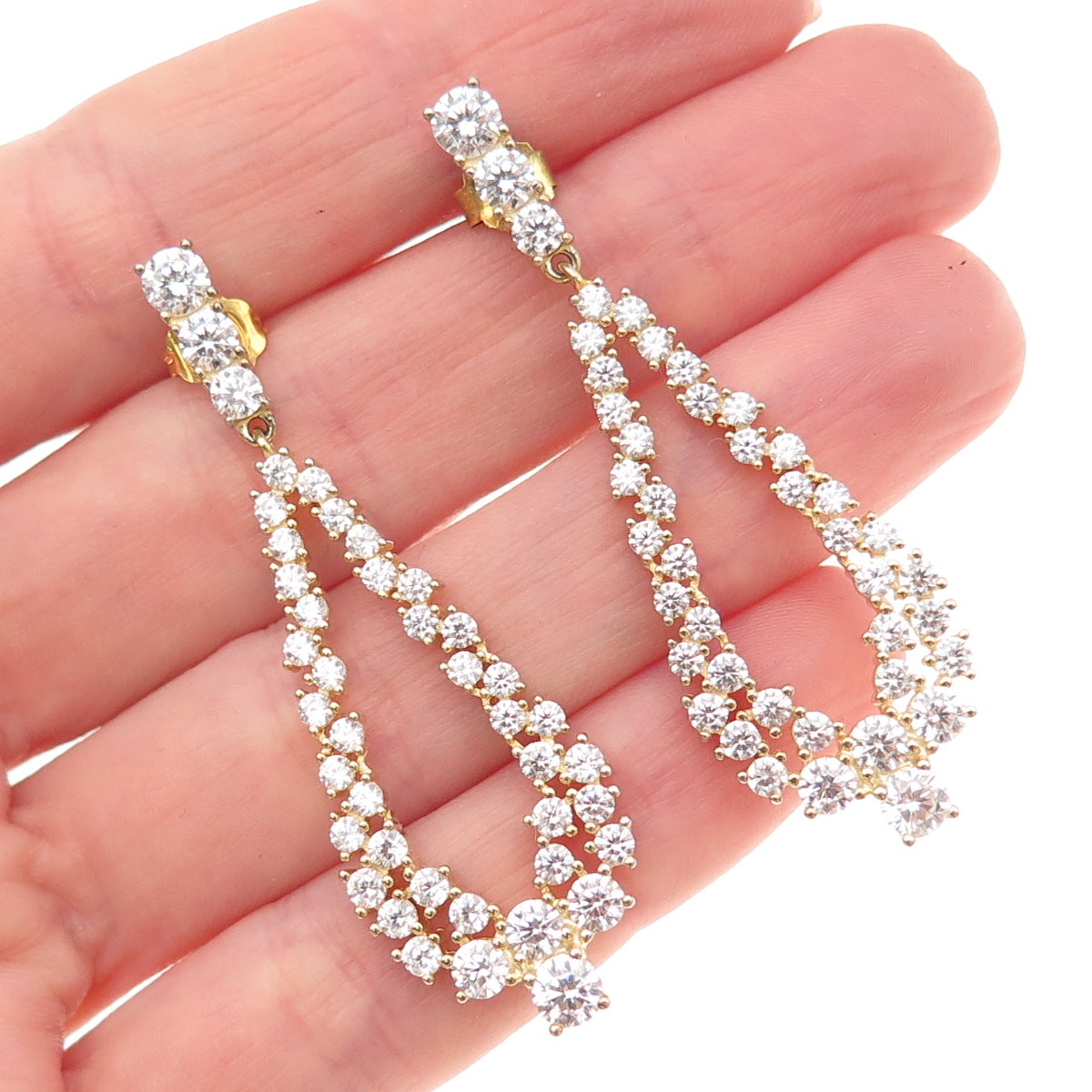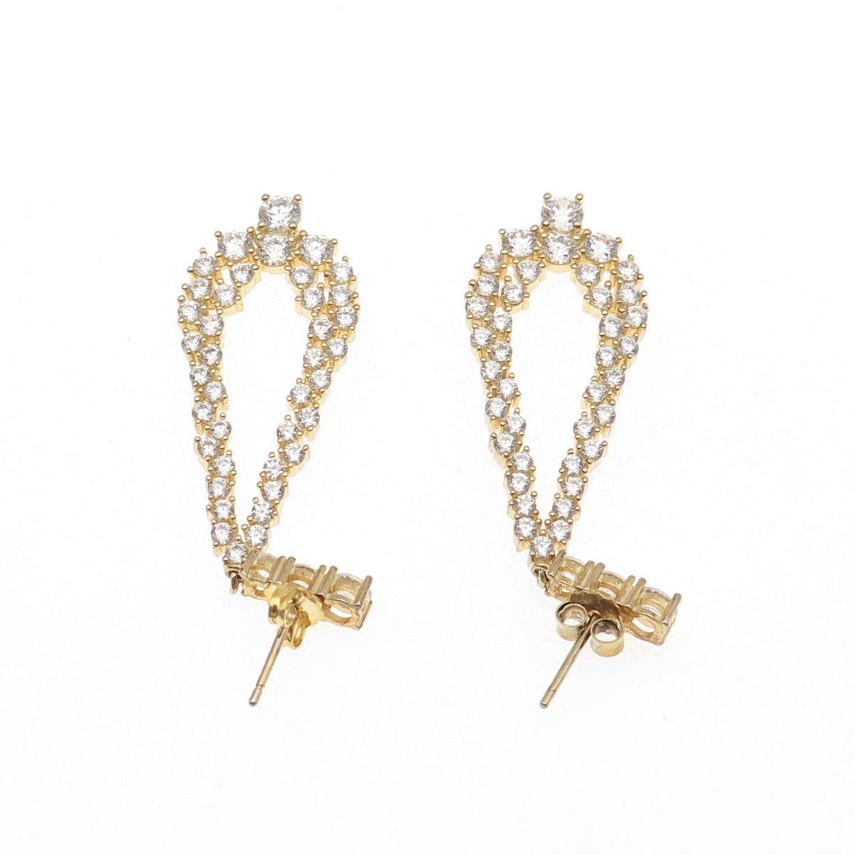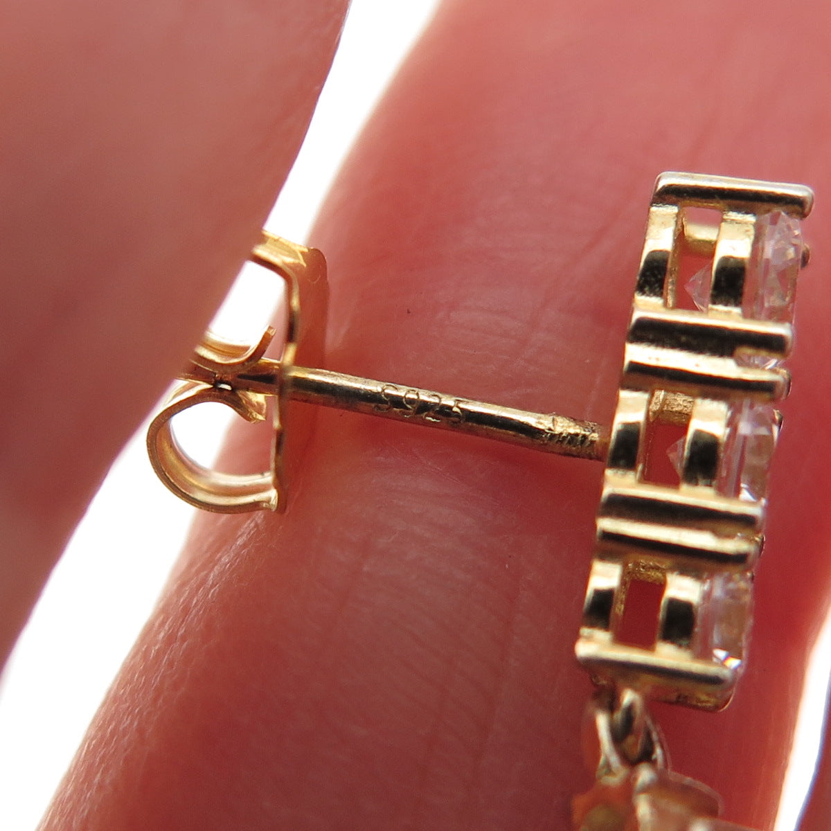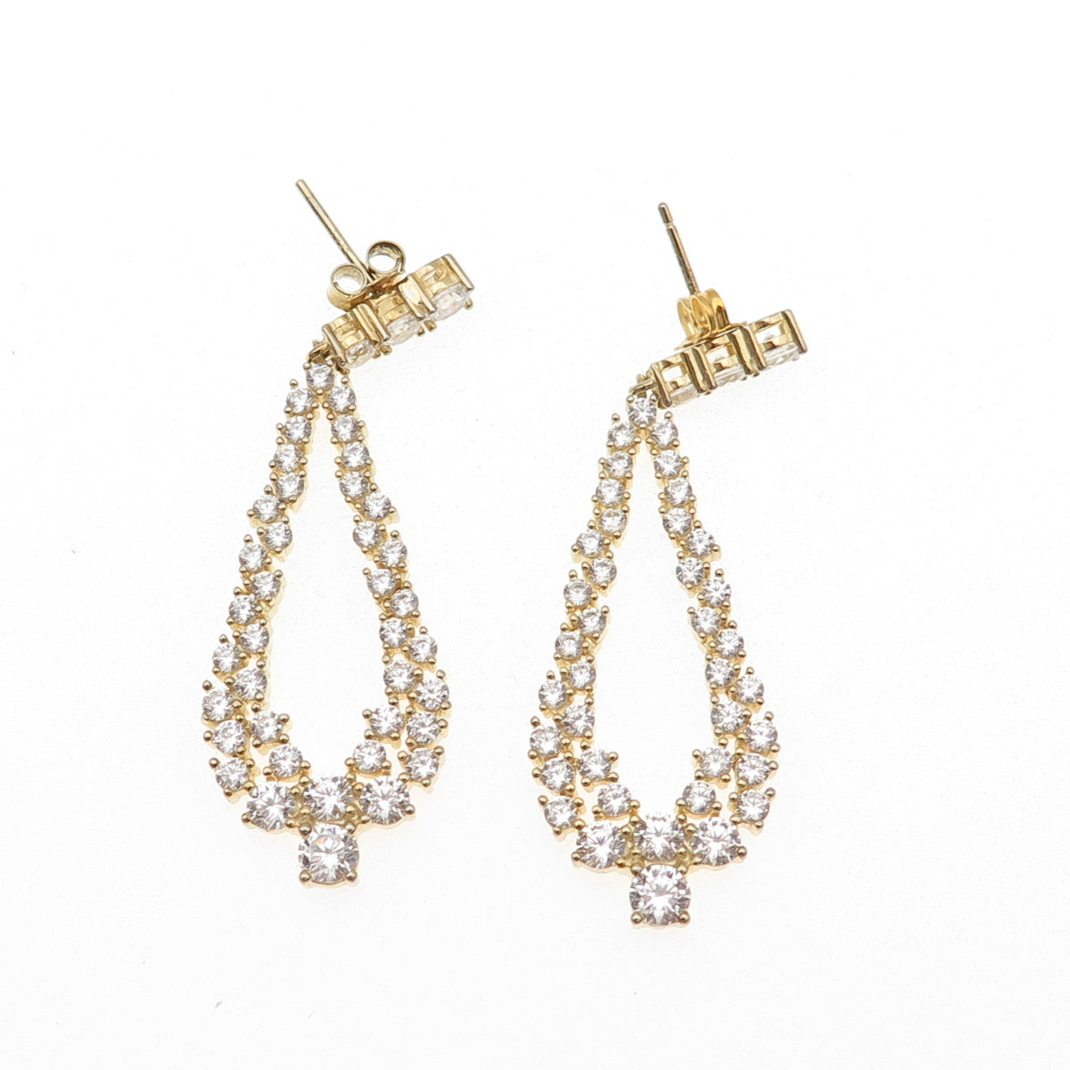 925 Sterling Silver Gold Plated Round-Cut C Z Teardrop Dangle Earrings