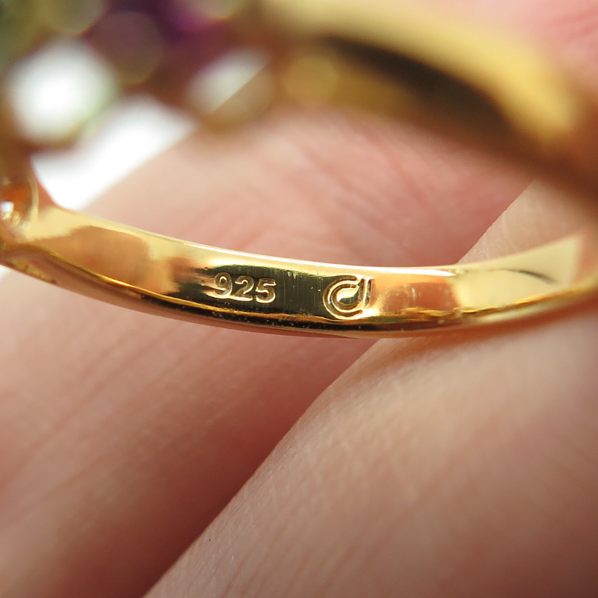 925 Sterling Silver Gold Plated Turquoise Opal Topaz Tourmaline Ring Size 5.25
