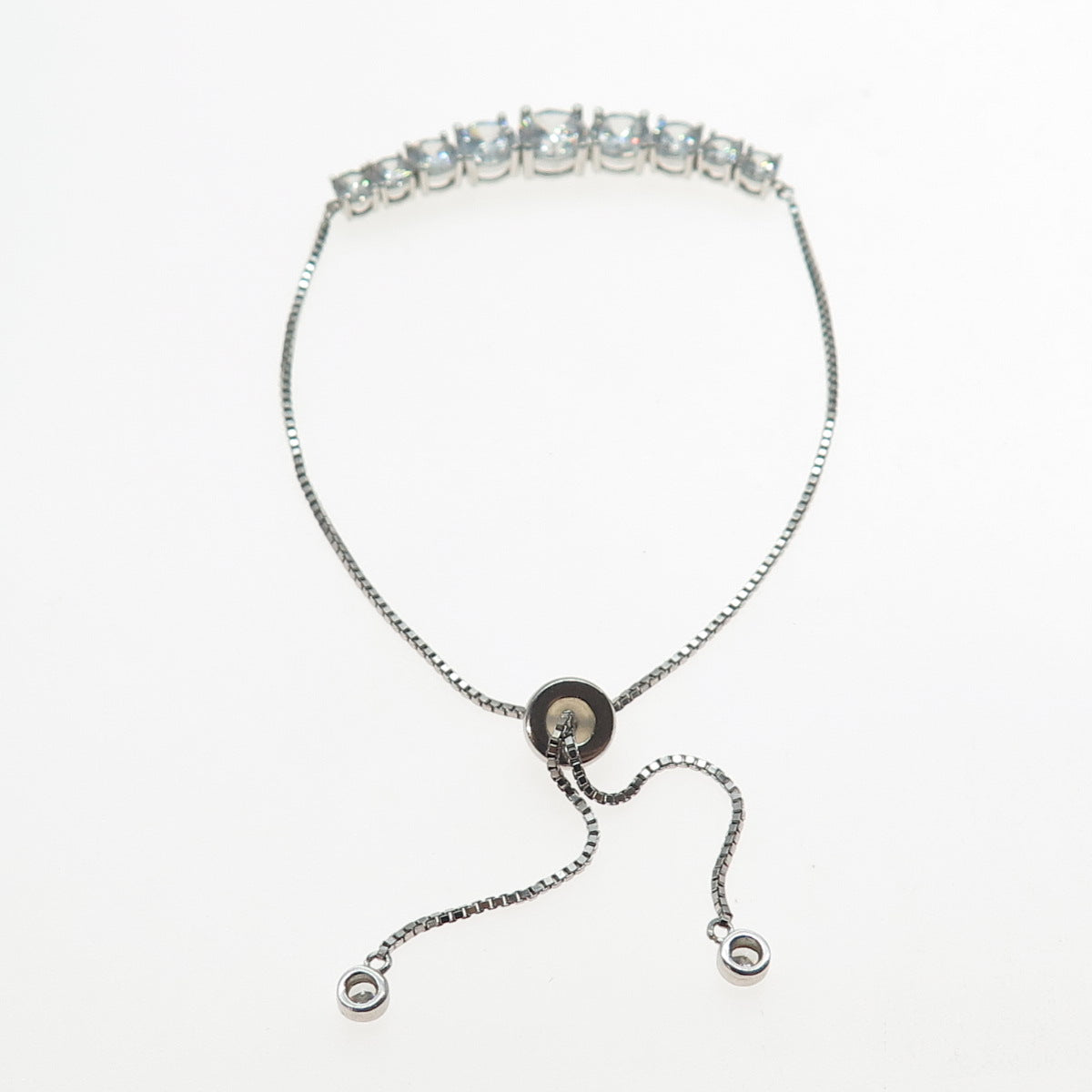 925 Sterling Silver Graduated Round-Cut C Z Adjustable Slide Bolo Bracelet 6-10"