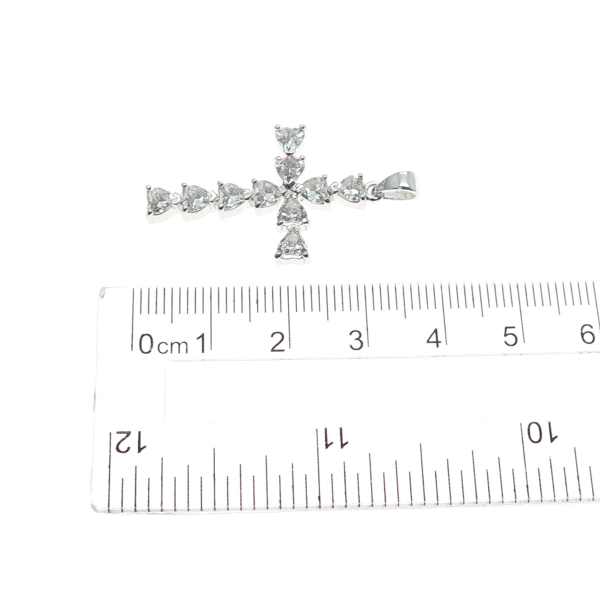 925 Sterling Silver Heart-Cut C Z Cross Charm Pendant