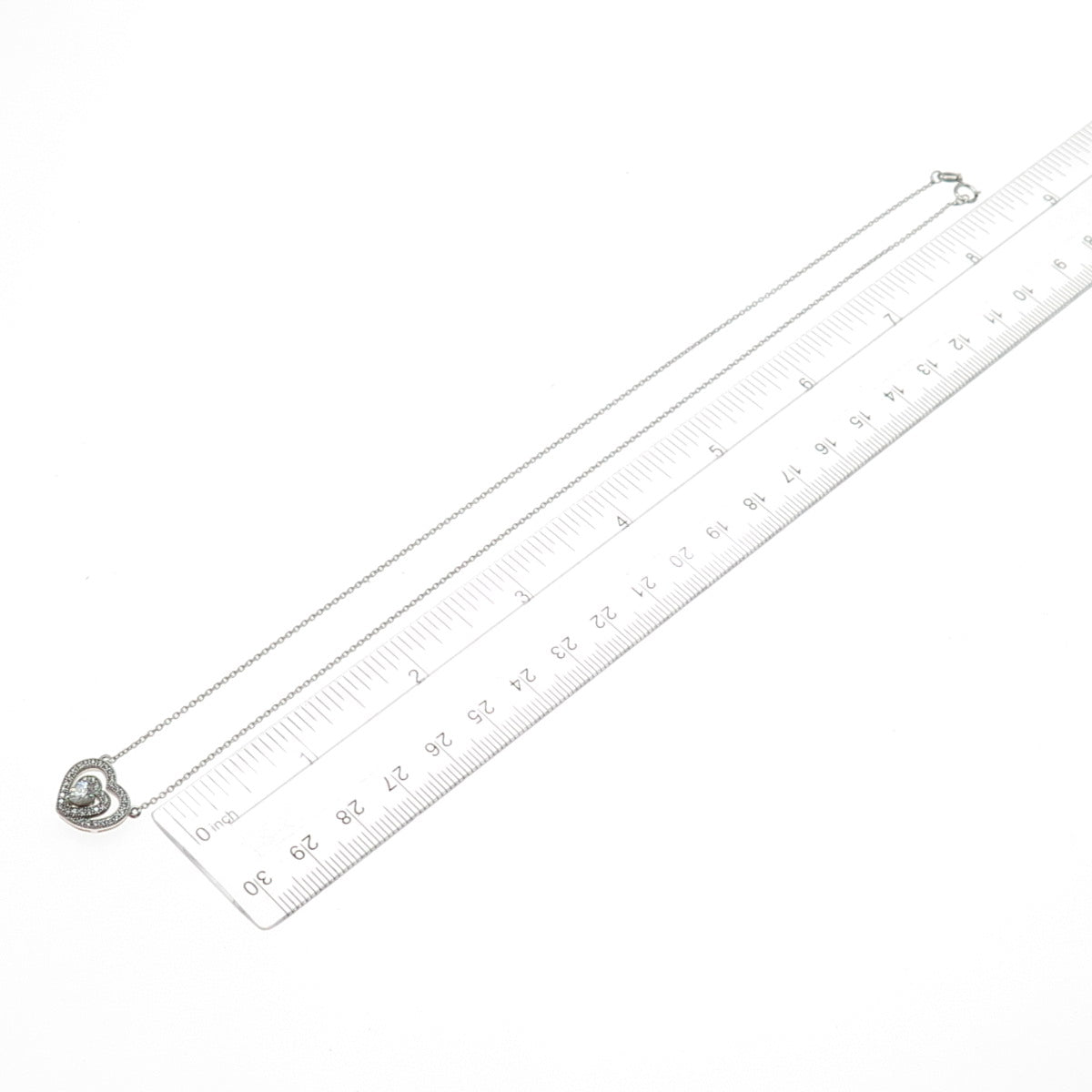 925 Sterling Silver Heart & Round-Cut C Z Cable Chain Necklace 18"