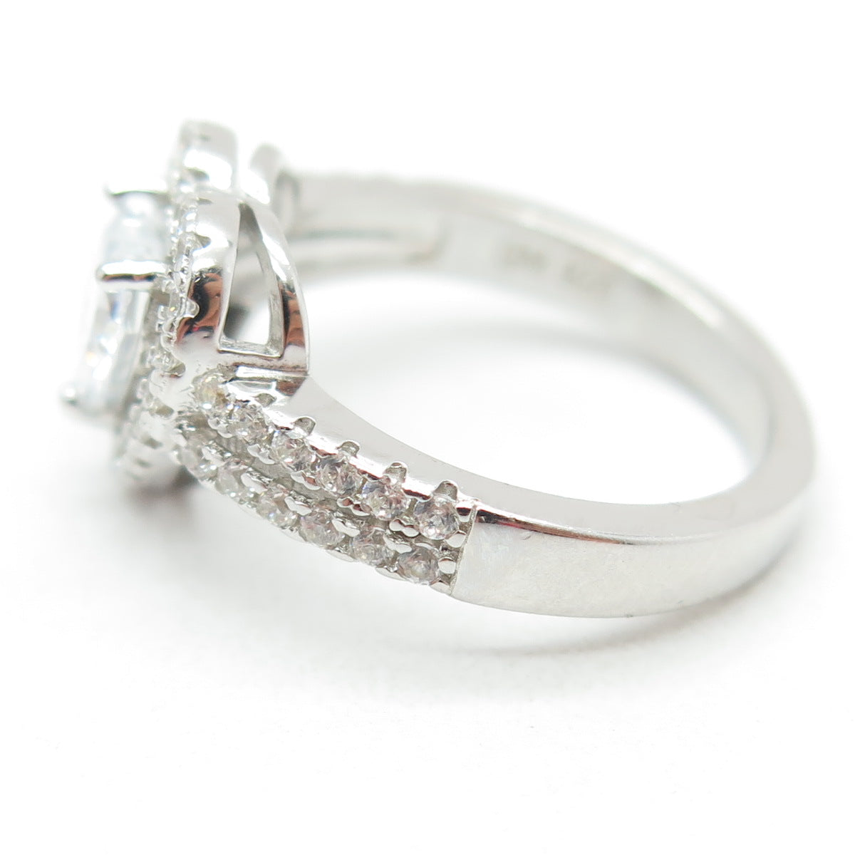 925 Sterling Silver Heart & Round-Cut C Z Promise Ring Size 5
