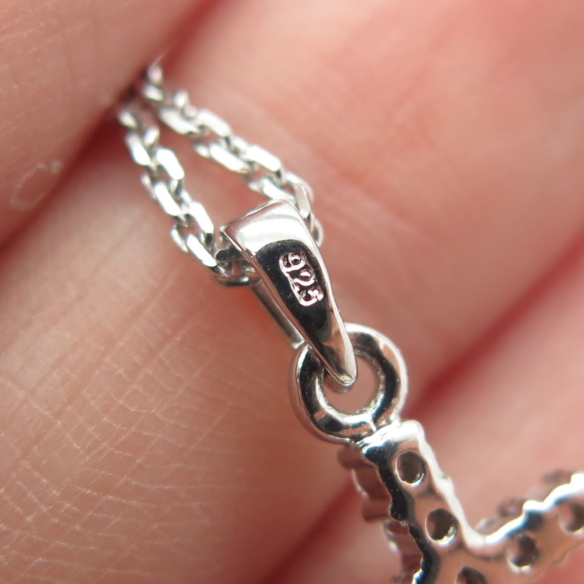 925 Sterling Silver Italy C Z Cross Pendant Cable Chain Necklace 16"