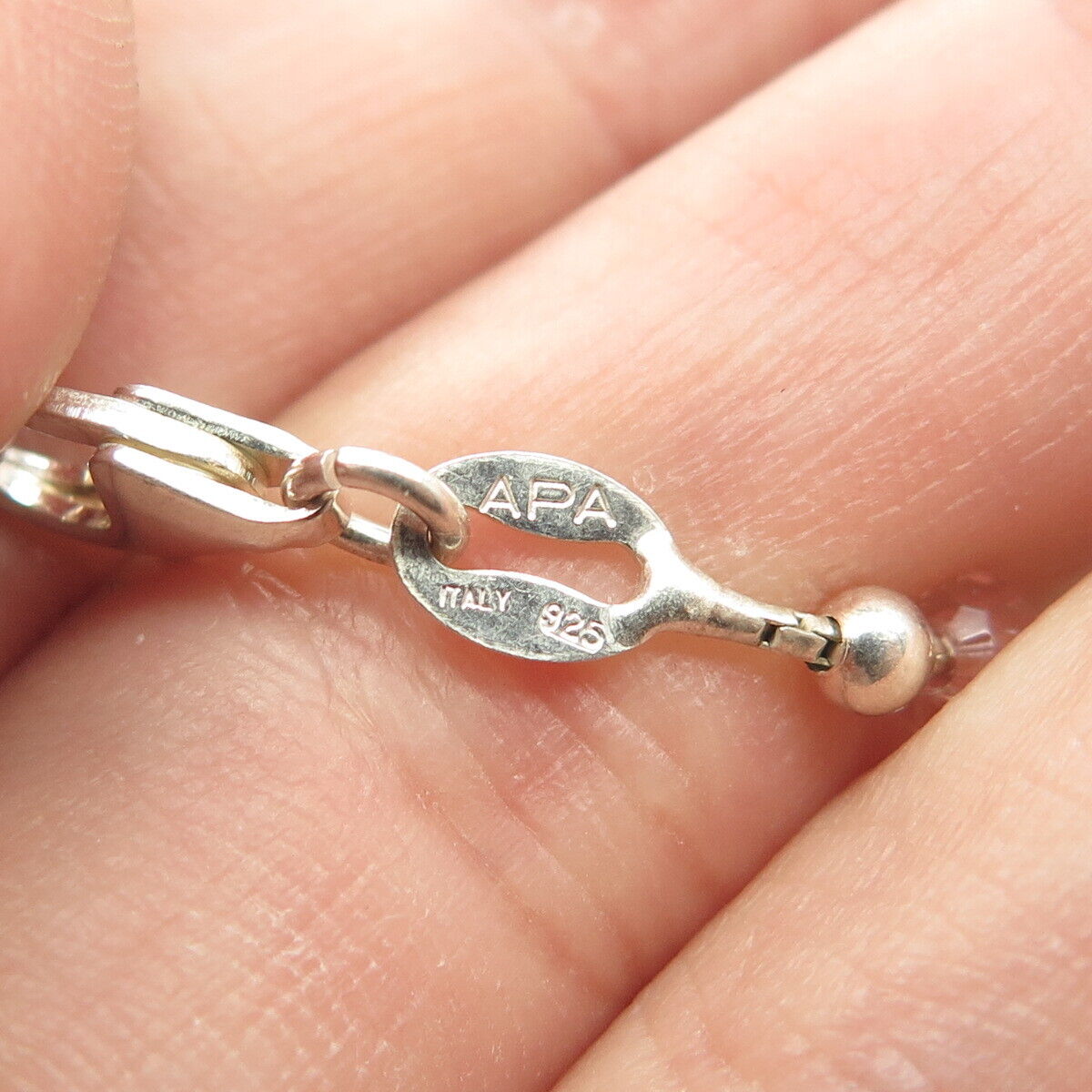 925 Sterling Silver Italy Multi-Color Crystal Ball Chain Necklace 14"
