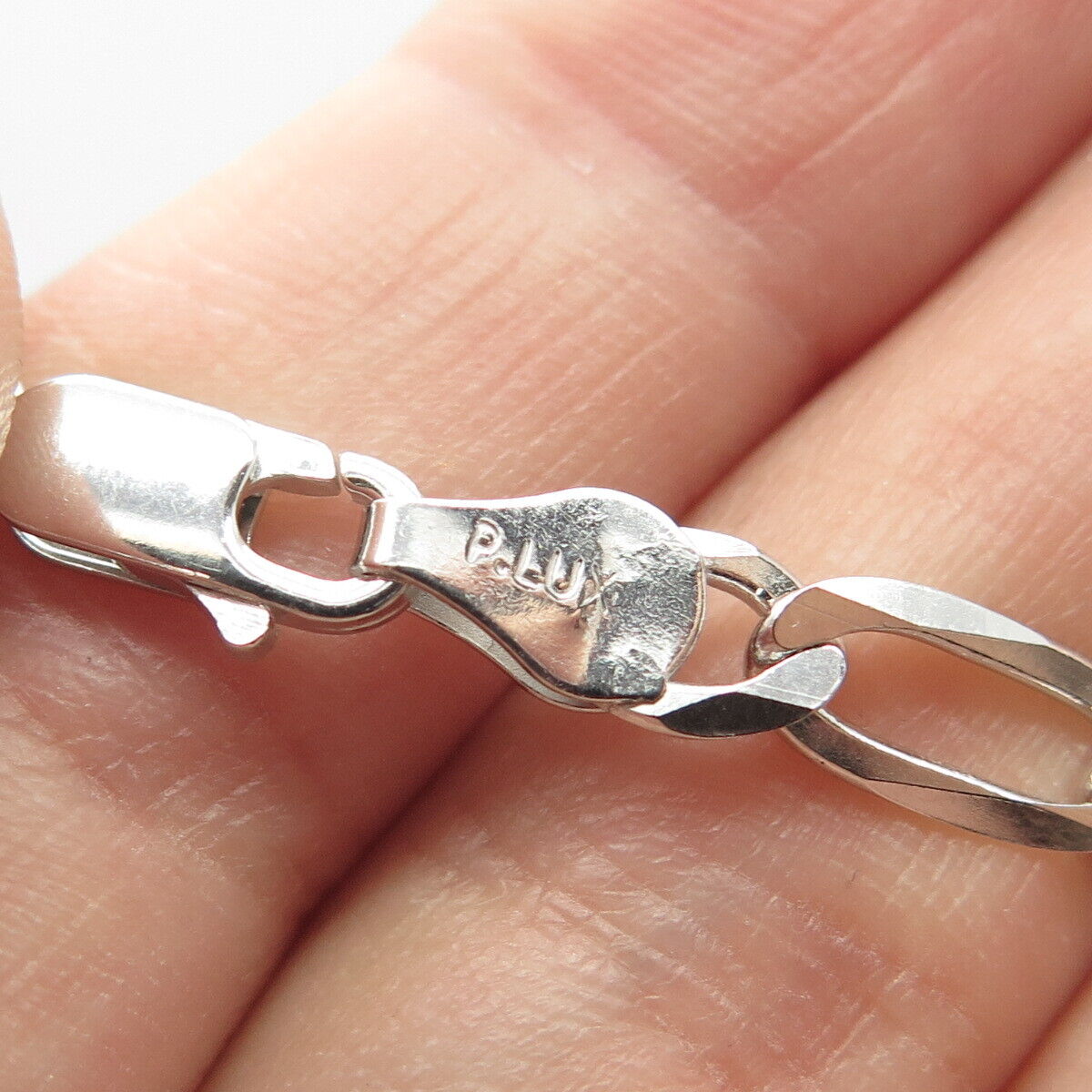 925 Sterling Silver Italy P. Lux Figaro Chain Necklace 24"