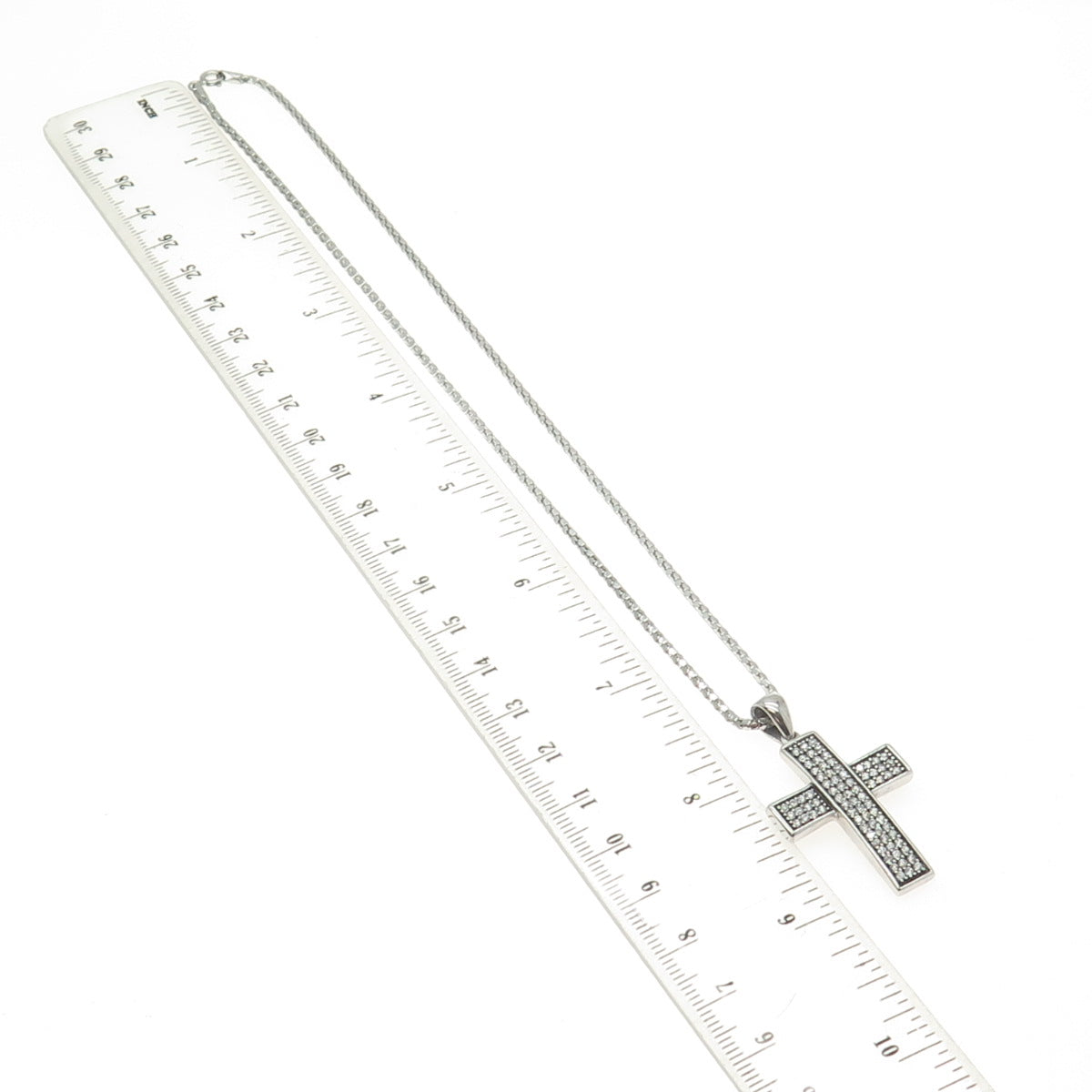 925 Sterling Silver Italy Pave C Z Cross Pendant Popcorn Chain Necklace 16"