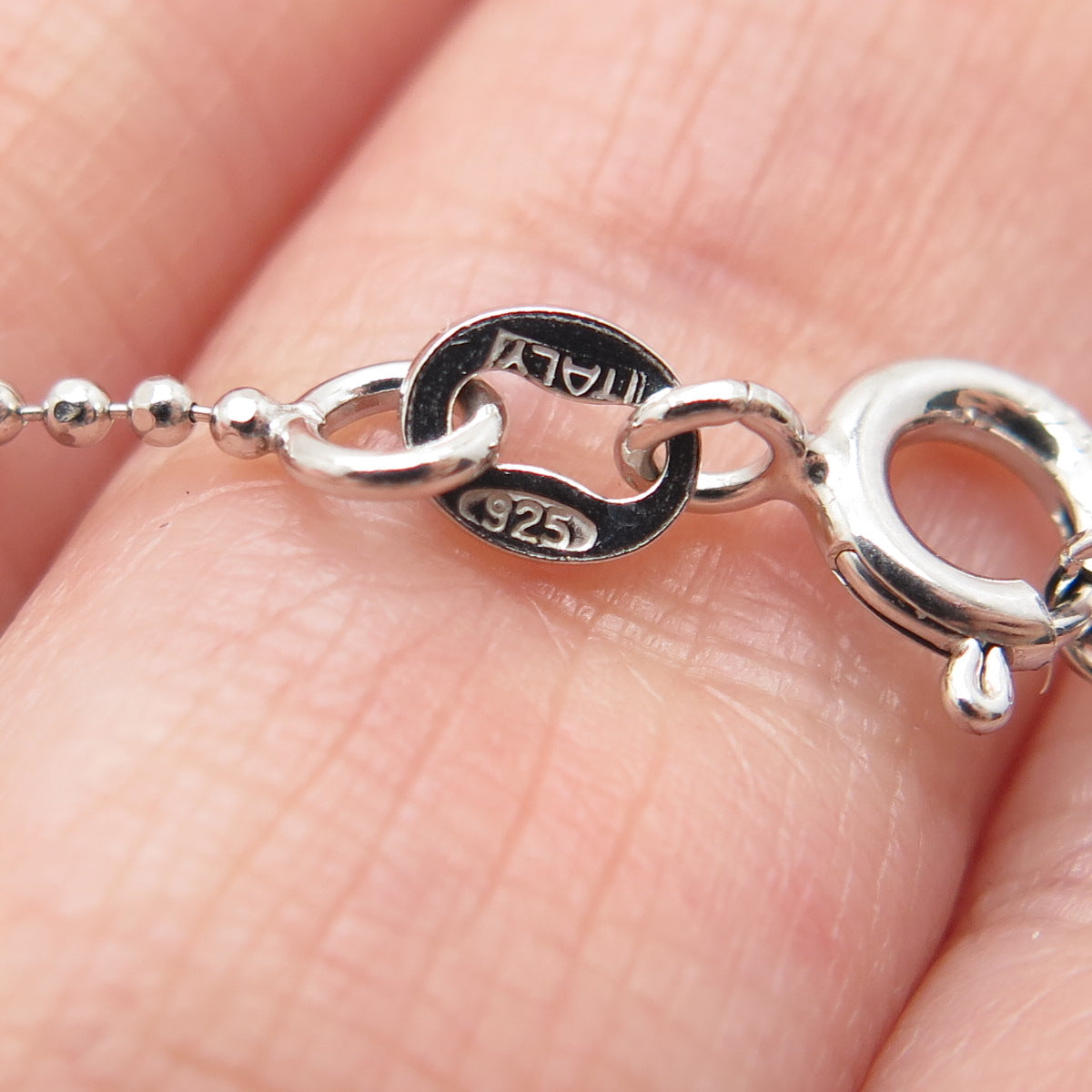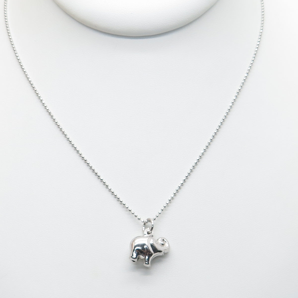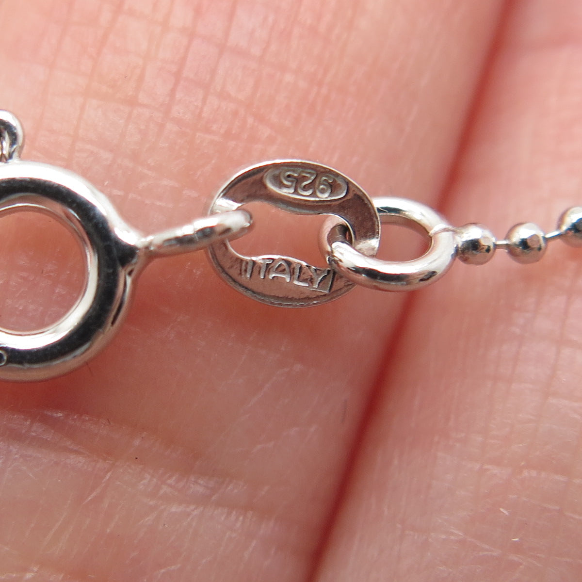 925 Sterling Silver Italy Puffy Elephant Pendant Beaded Chain Necklace 16-18"