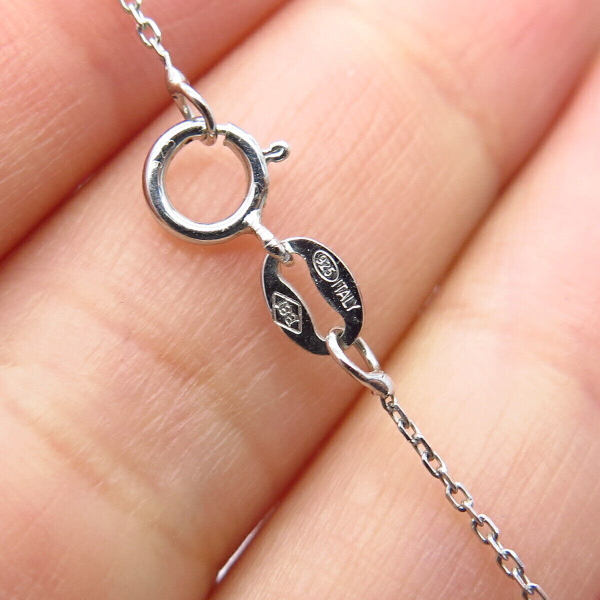 925 Sterling Silver Italy Real White Black Diamond Heart Rolo Chain Necklace 18"