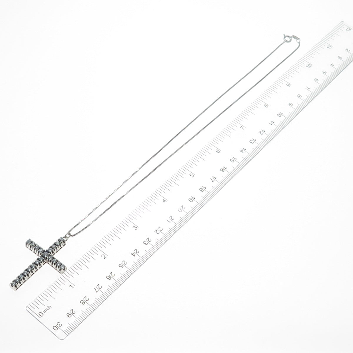 925 Sterling Silver Italy Round-Cut C Z Cross Box Chain Necklace 18"