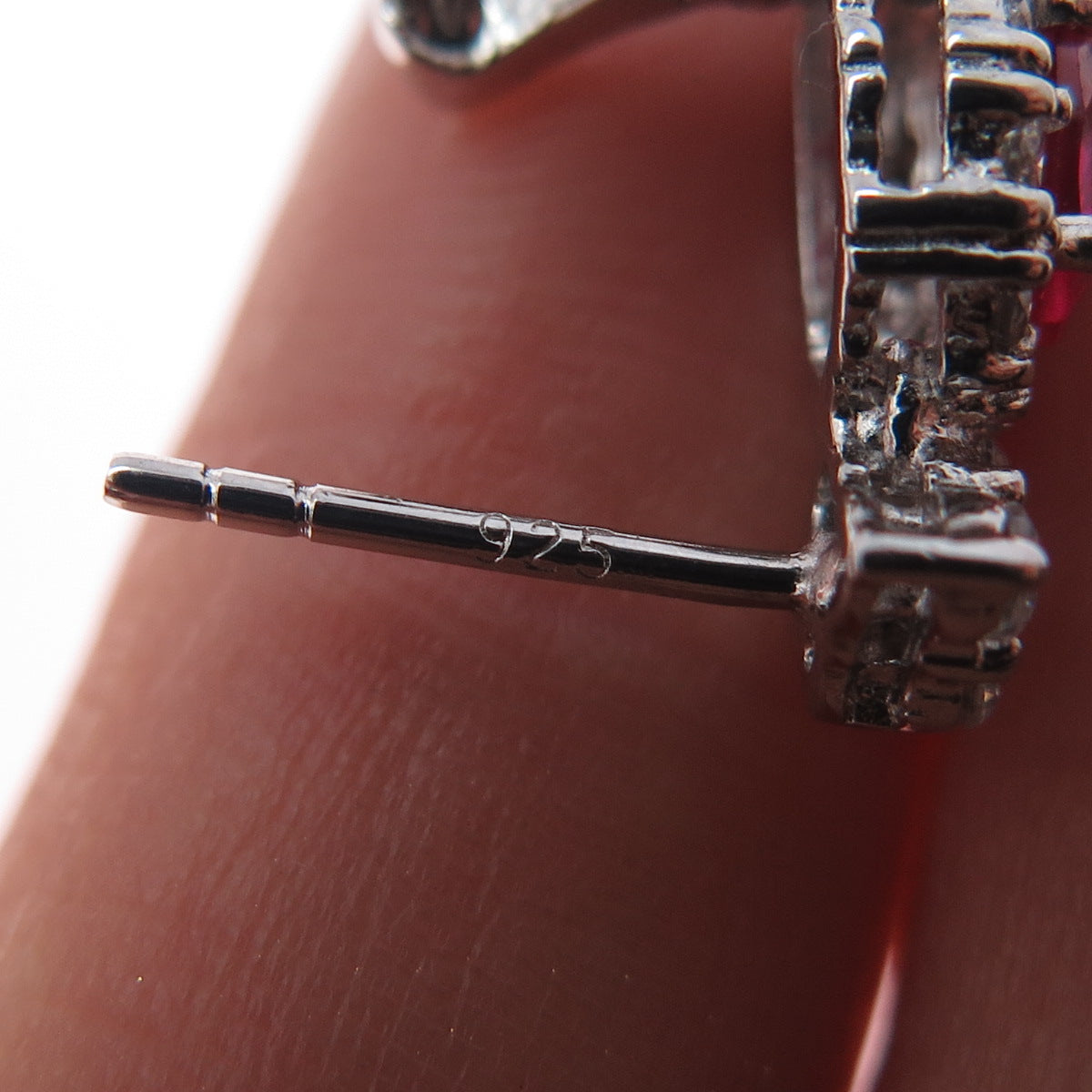 925 Sterling Silver Lab-Created Ruby & C Z Dangle Earrings