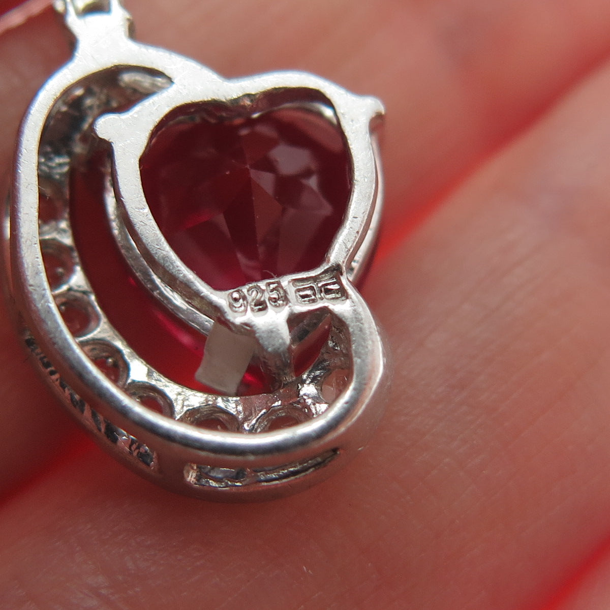925 Sterling Silver Lab-Created Ruby & Real White Topaz Heart Minimalist Pendant